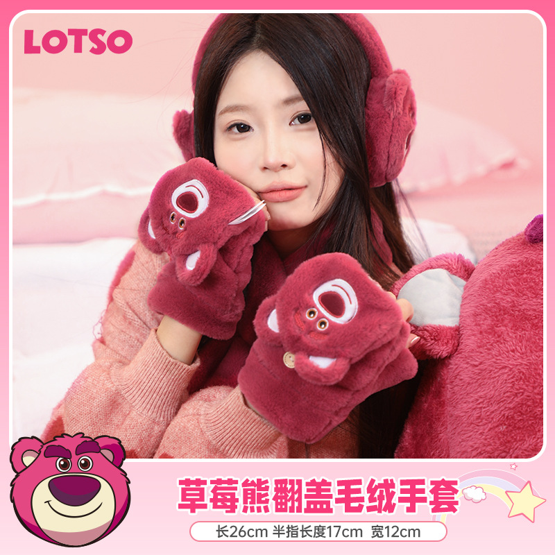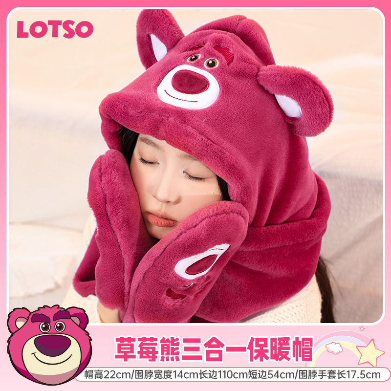 디즈니 스티치 봉제 귀 보호 모자 마스크 귀 마스크 여성 가을과 겨울 딸기 곰 스키 스카프 따뜻한 장갑