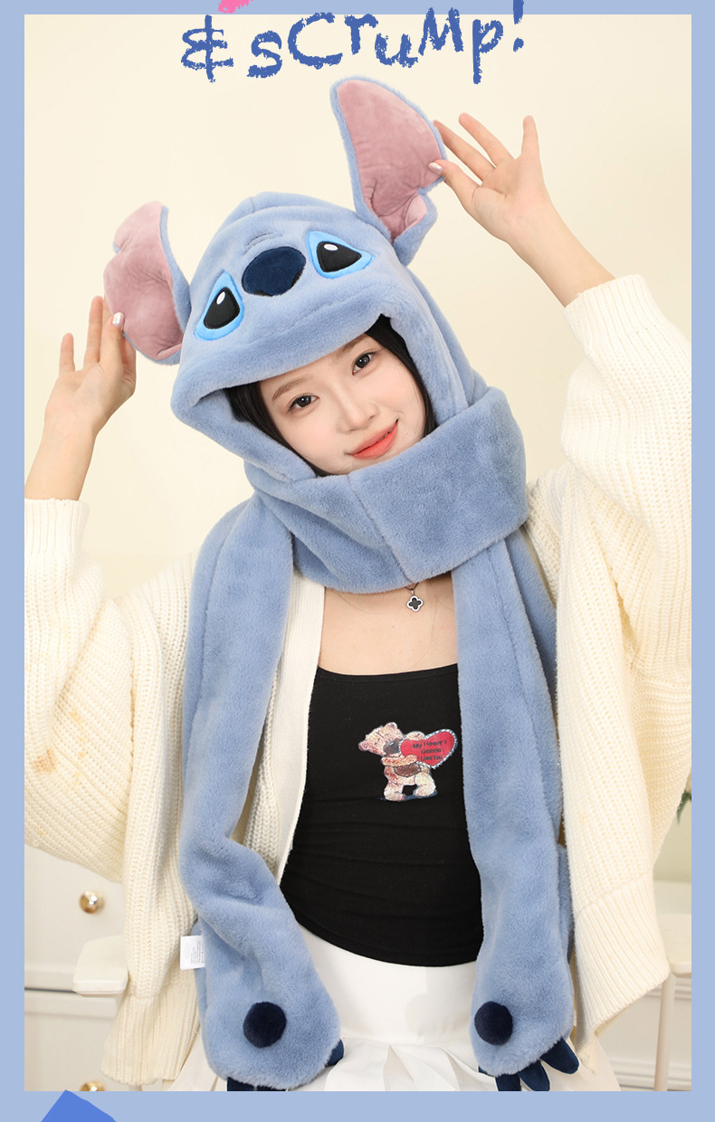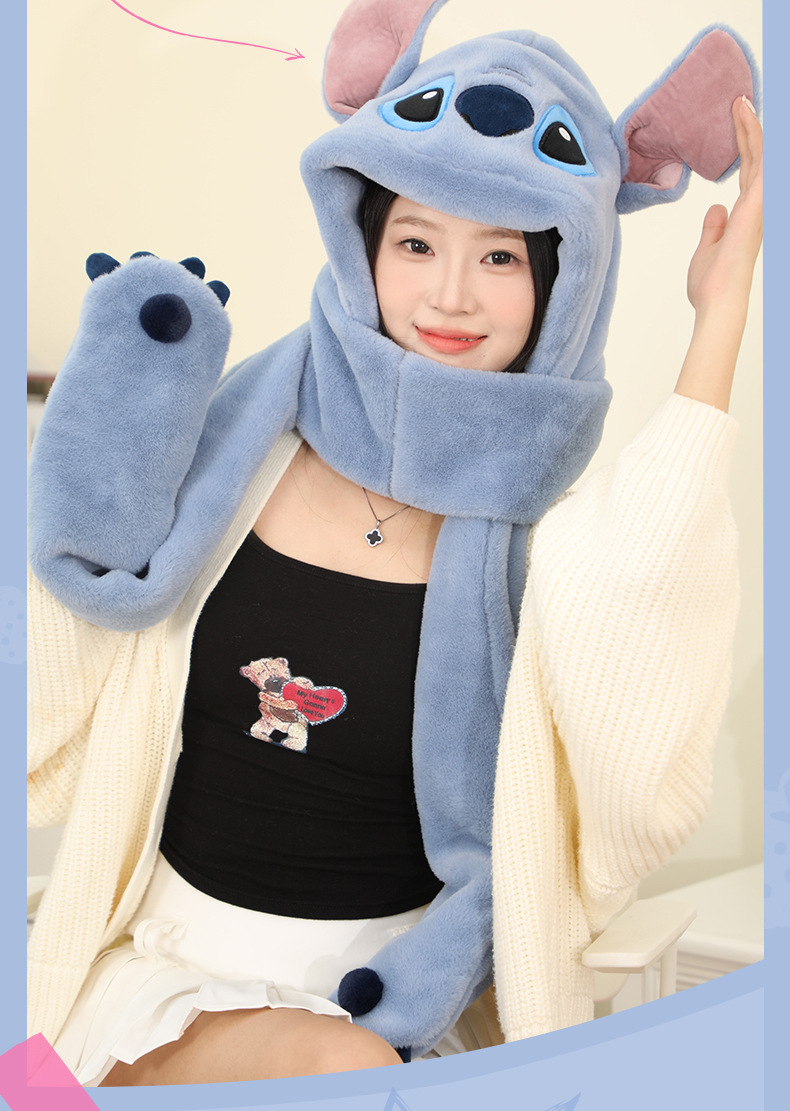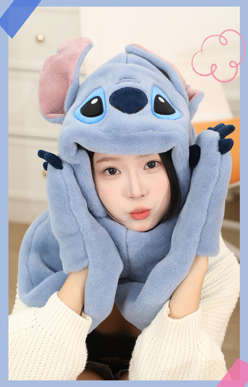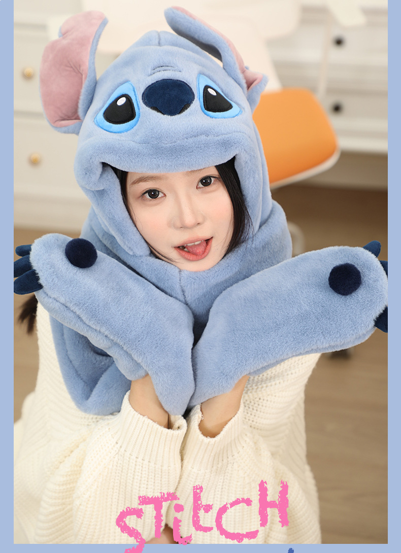 디즈니 스티치 봉제 귀 보호 모자 마스크 귀 마스크 여성 가을과 겨울 딸기 곰 스키 스카프 따뜻한 장갑스토어 가기