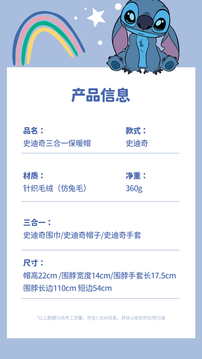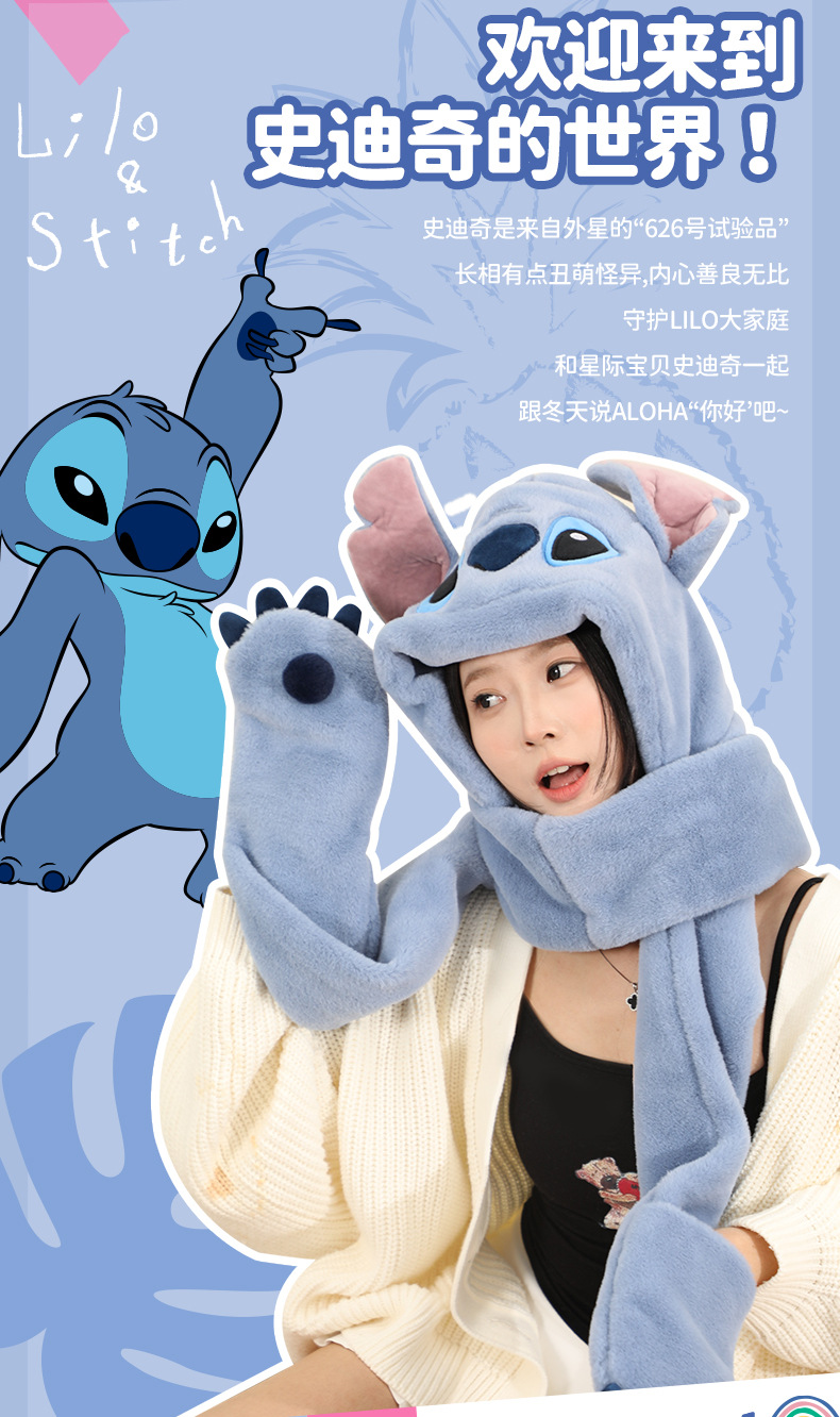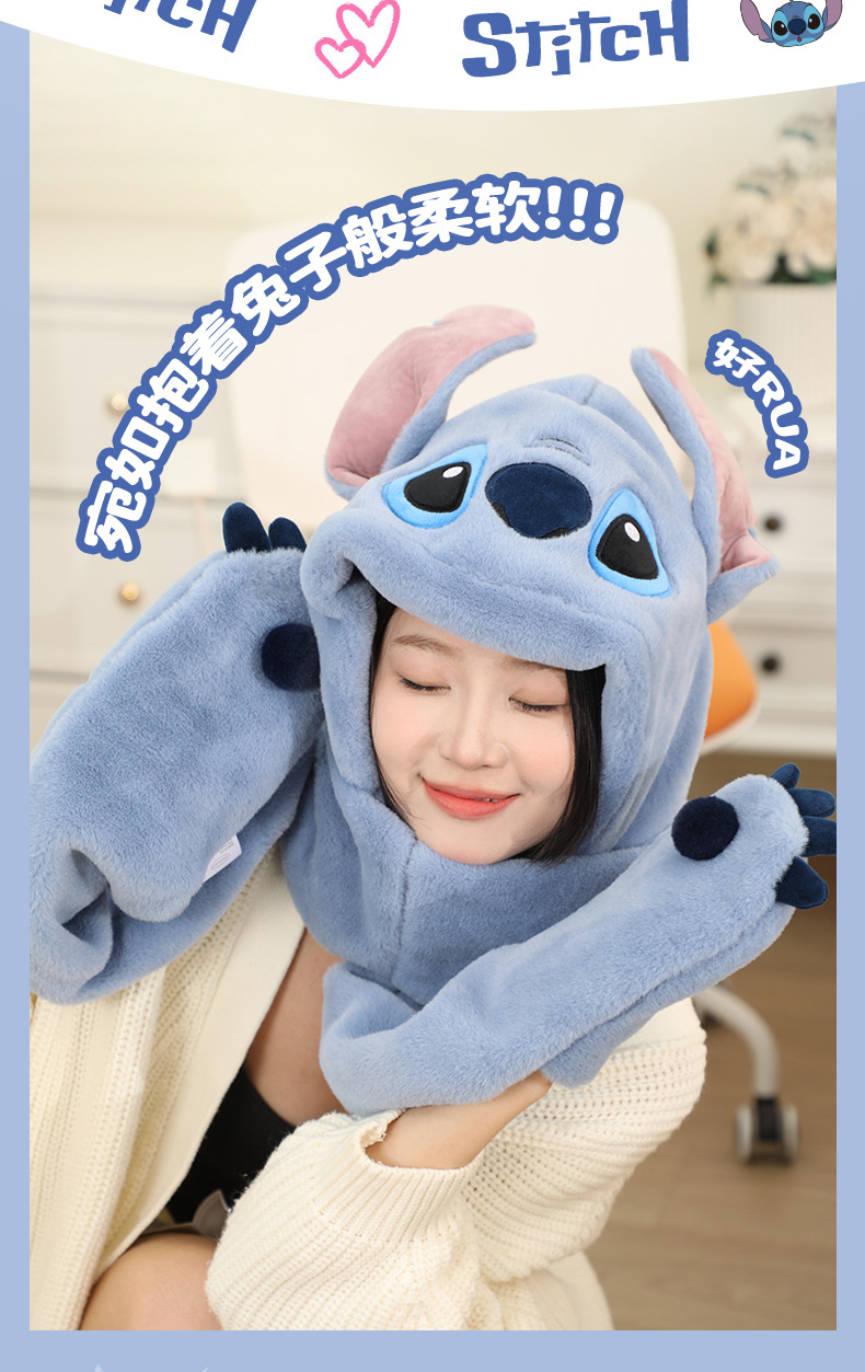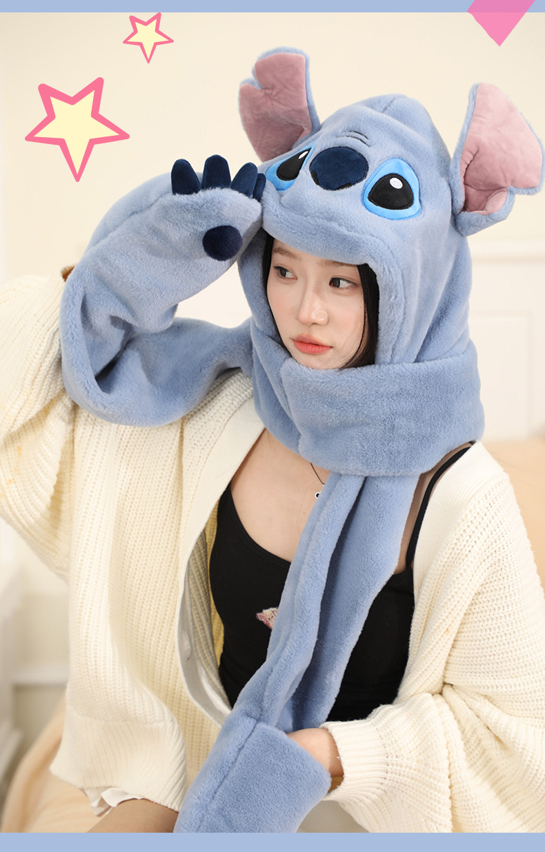 디즈니 스티치 봉제 귀 보호 모자 마스크 귀 마스크 여성 가을과 겨울 딸기 곰 스키 스카프 따뜻한 장갑스토어 가기