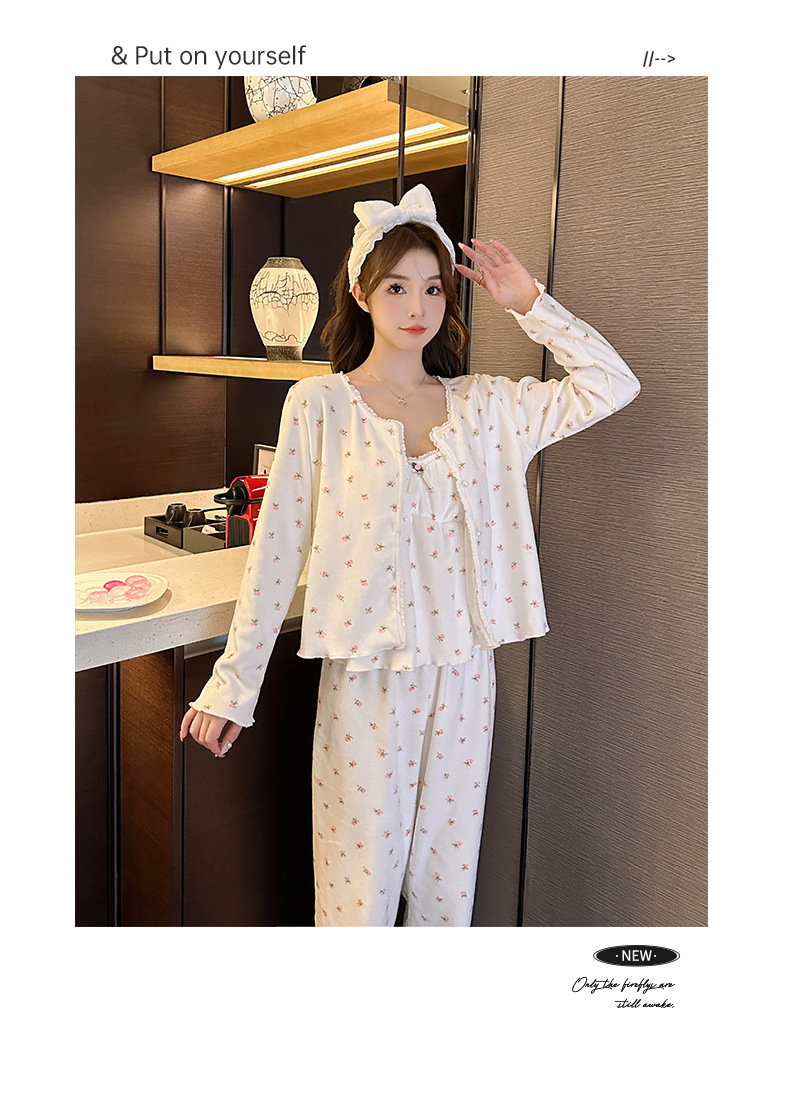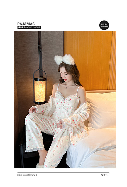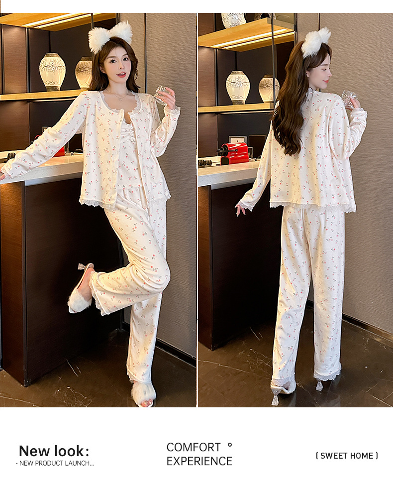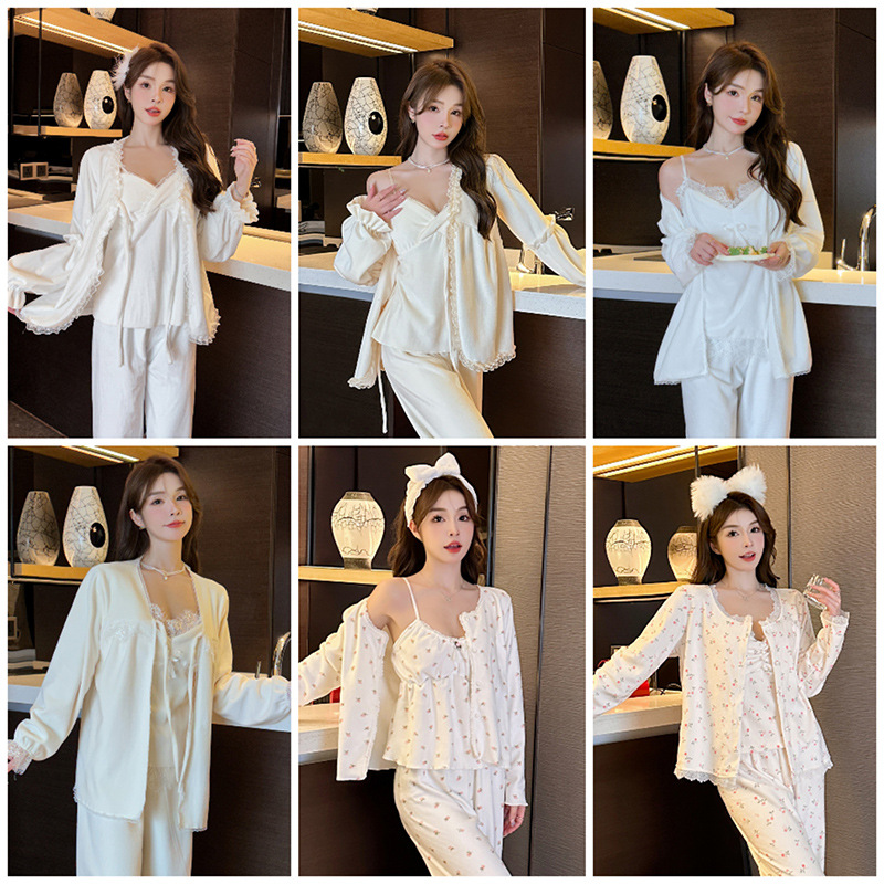 여성용 잠옷 2024 봄, 가을, 여름 신상품 섬 벨벳 긴팔 섹시한 레이스 테두리 편안한 홈웨어 세트스토어 가기