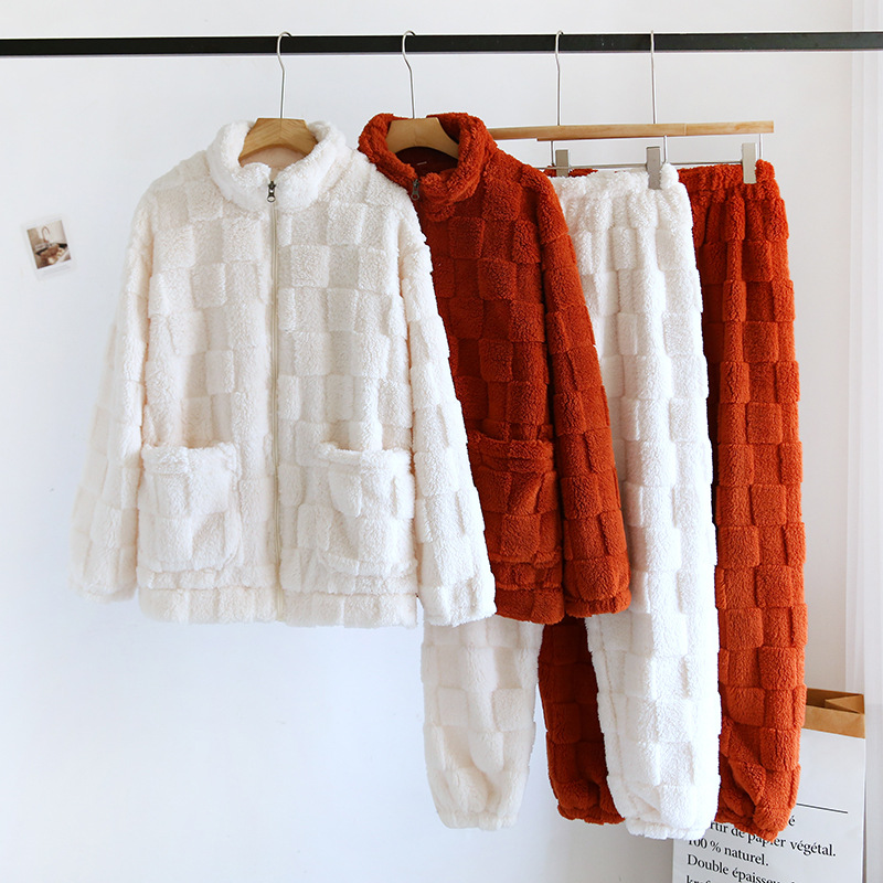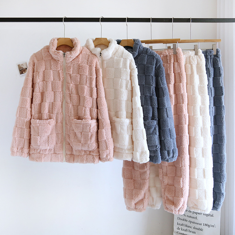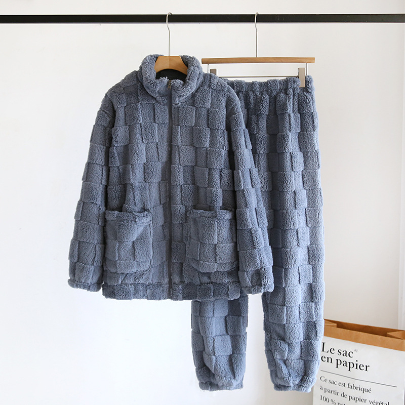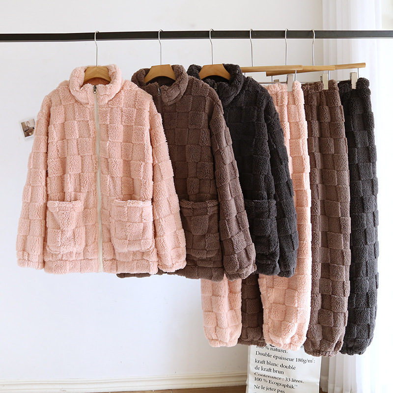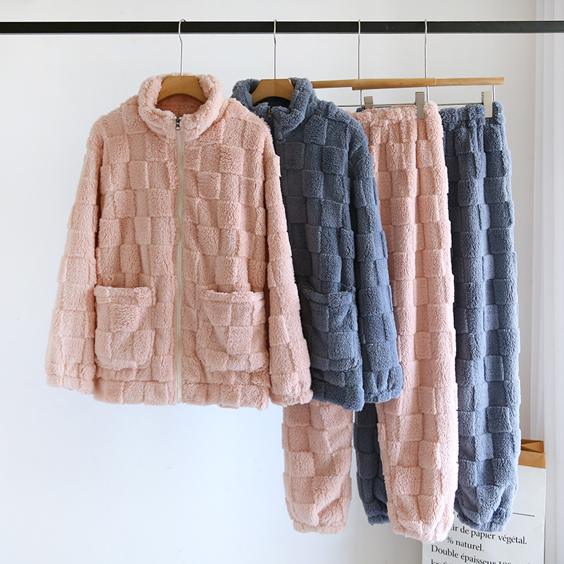 가을과 겨울 가정 의류 커플 지퍼 두꺼운 따뜻한 잠옷 새로운 산호 양털 여자의 긴 소매 플란넬 세트 남성스토어 가기