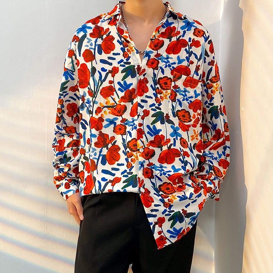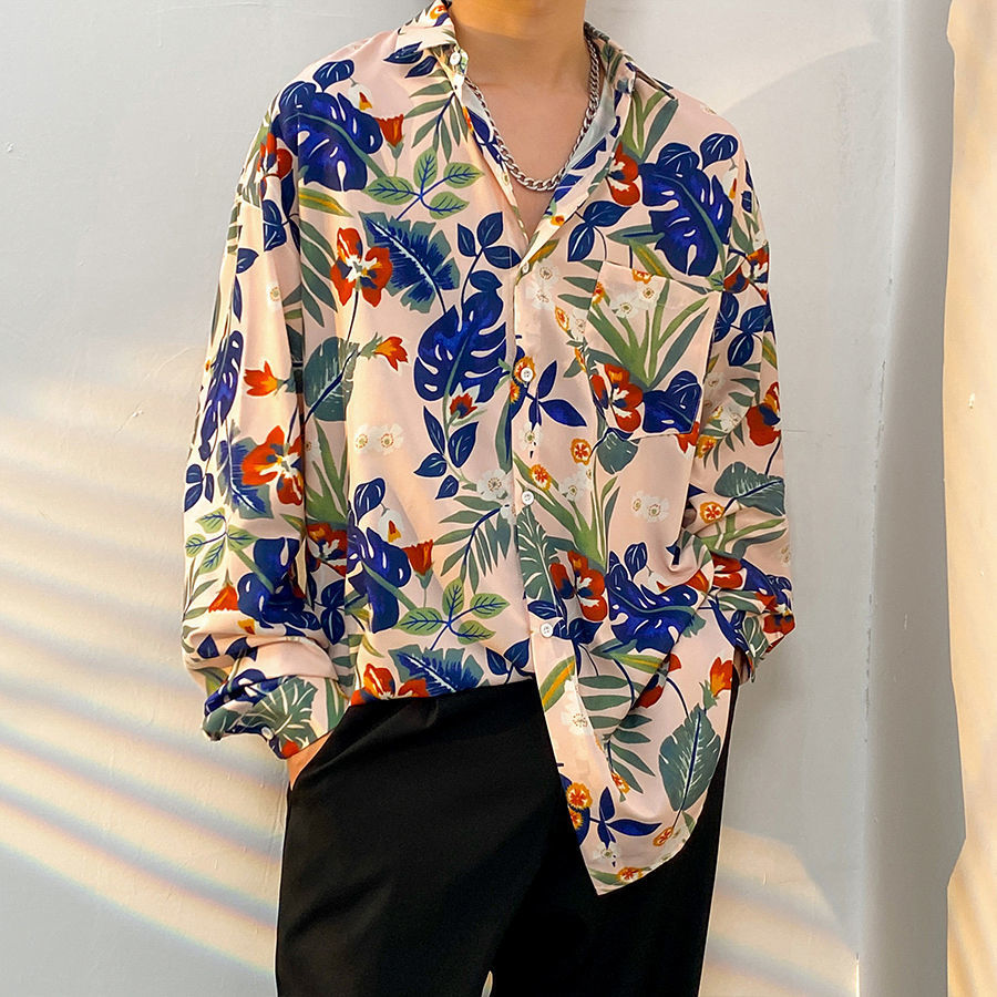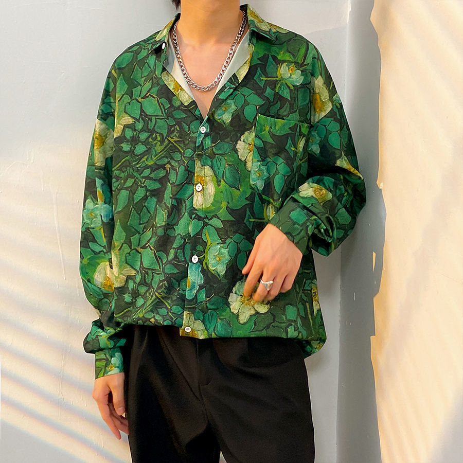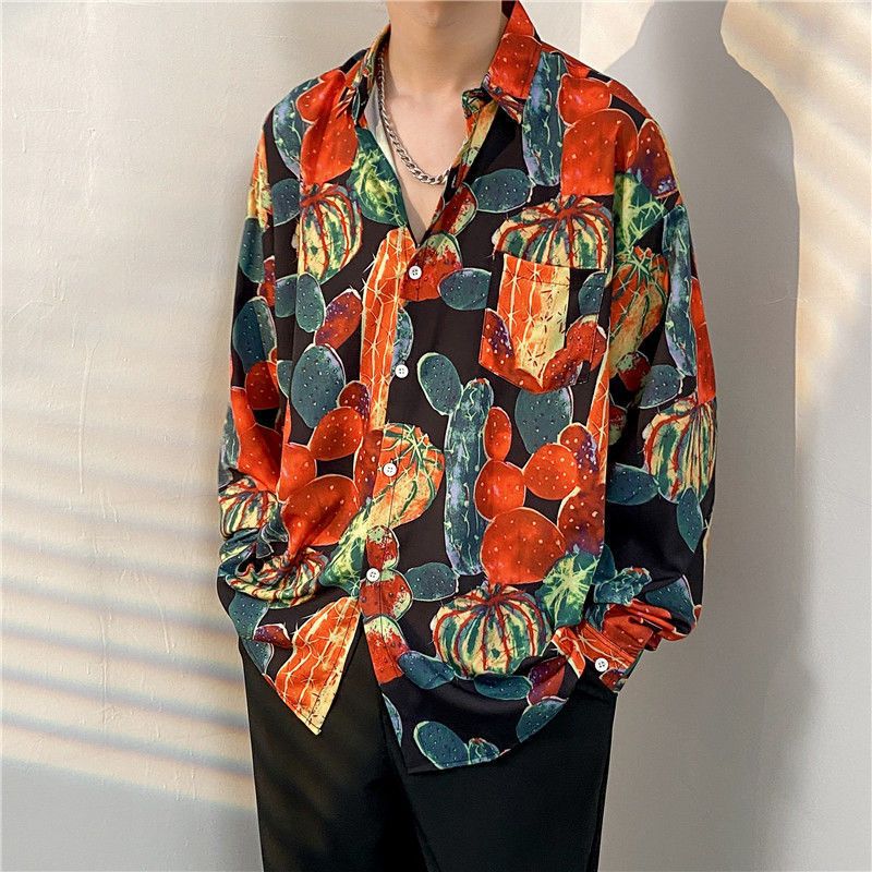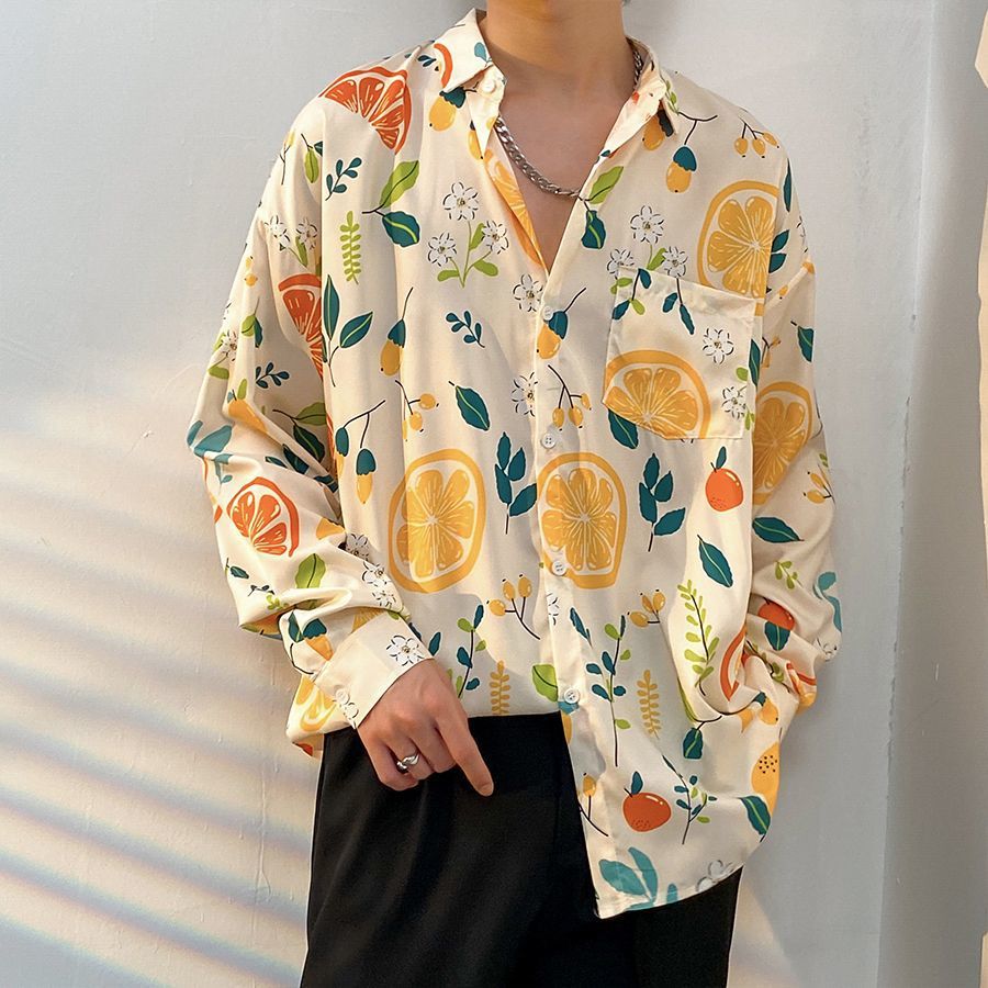 페어리 셔츠 남자의 재미있는 과학자 프린트 셔츠 남자의 긴 소매 홍콩 스타일 느슨한 패션 캐주얼 셔츠 재킷