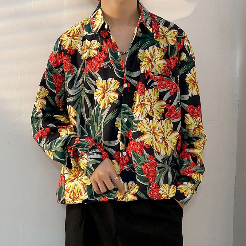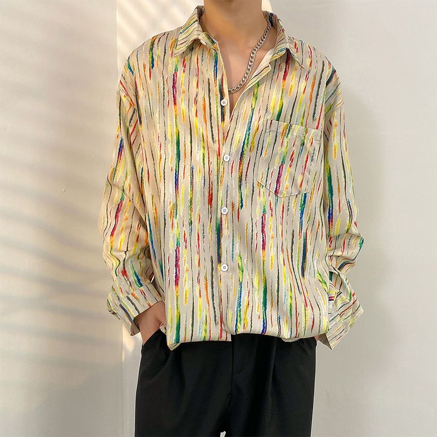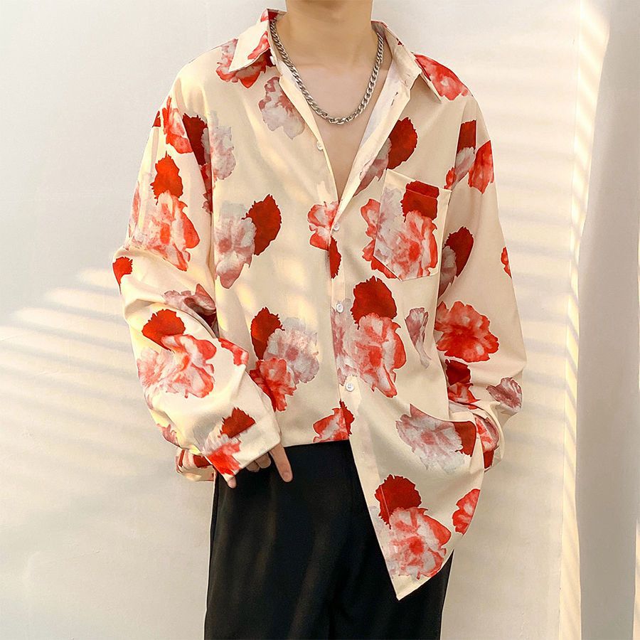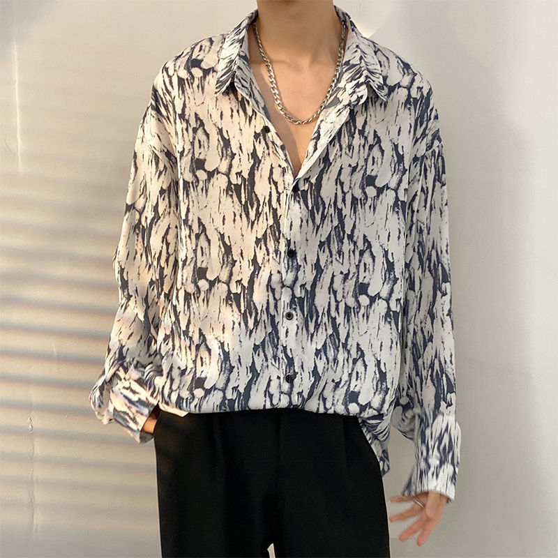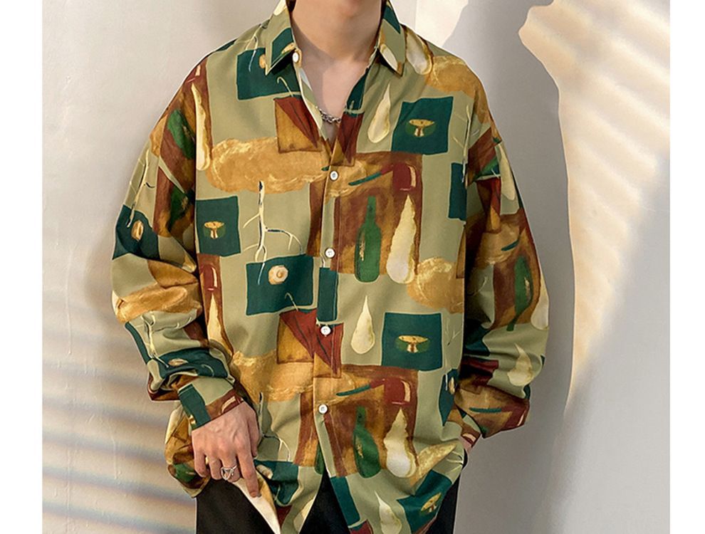 페어리 셔츠 남자의 재미있는 과학자 프린트 셔츠 남자의 긴 소매 홍콩 스타일 느슨한 패션 캐주얼 셔츠 재킷