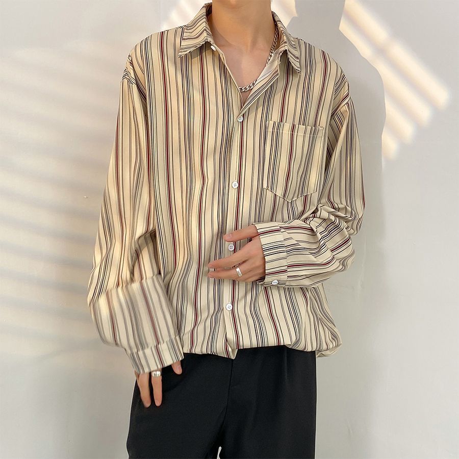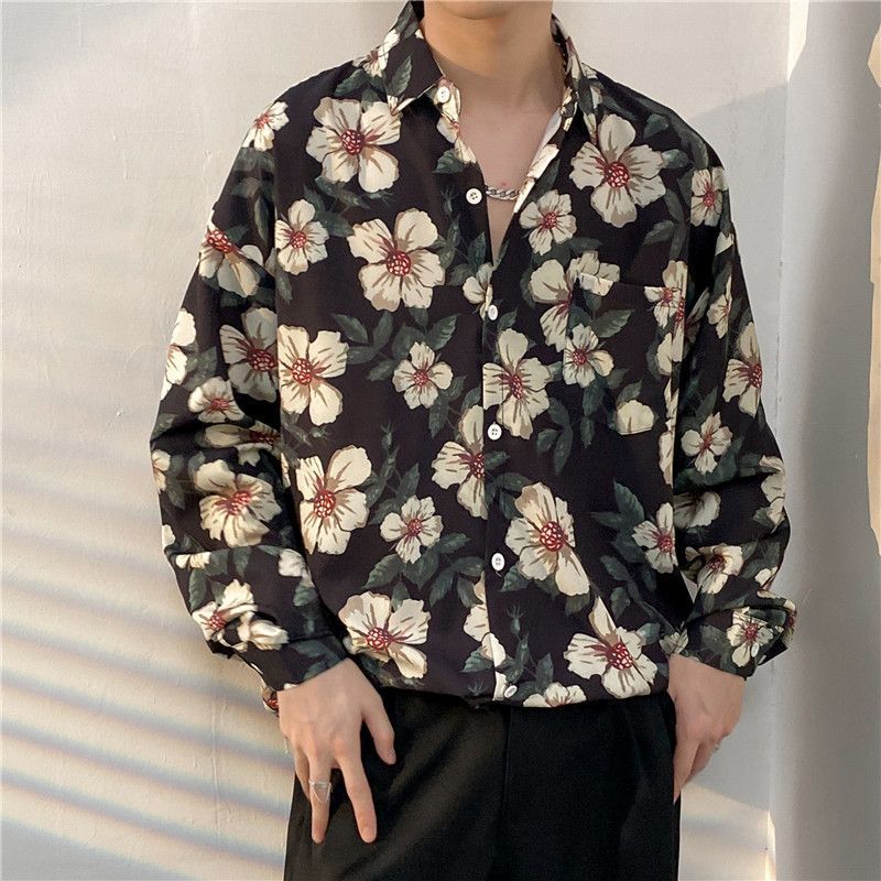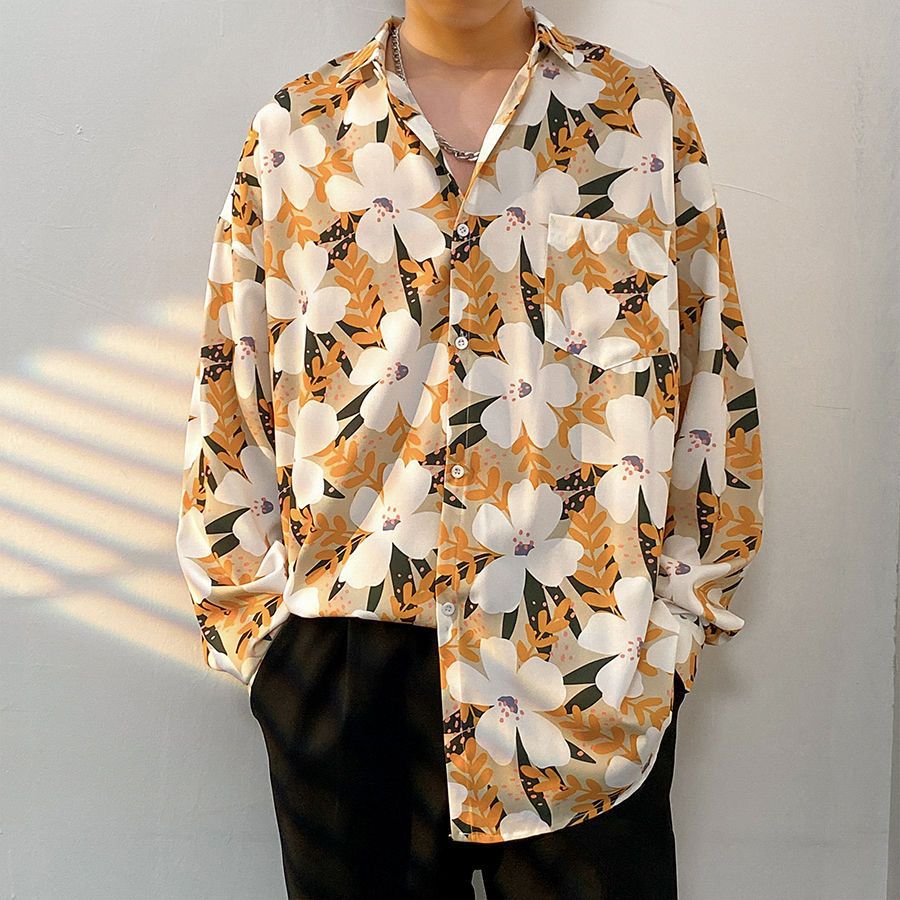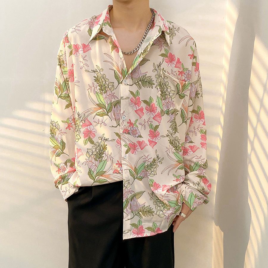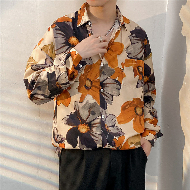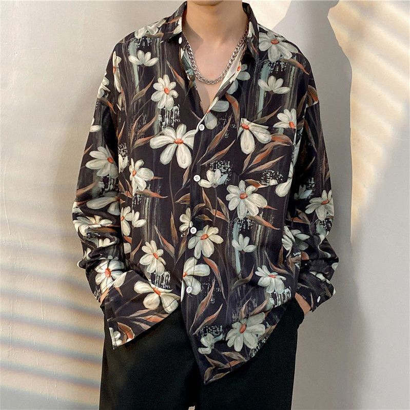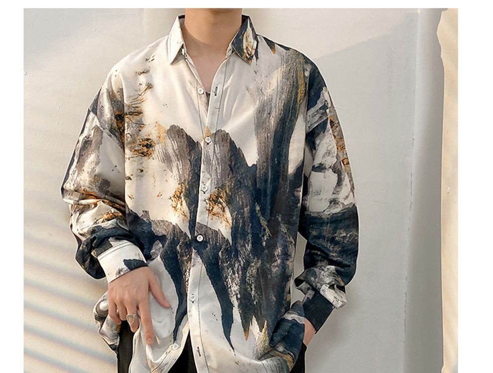 페어리 셔츠 남자의 재미있는 과학자 프린트 셔츠 남자의 긴 소매 홍콩 스타일 느슨한 패션 캐주얼 셔츠 재킷스토어 가기