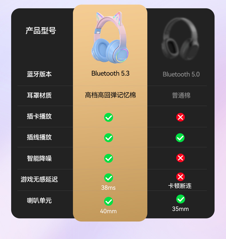 그라디언트 고양이 귀 빛나는 무선 블루투스 헤드셋 높은 음질 인터넷 빨간 귀여운 소녀 국경 간 필수 공장 아울렛