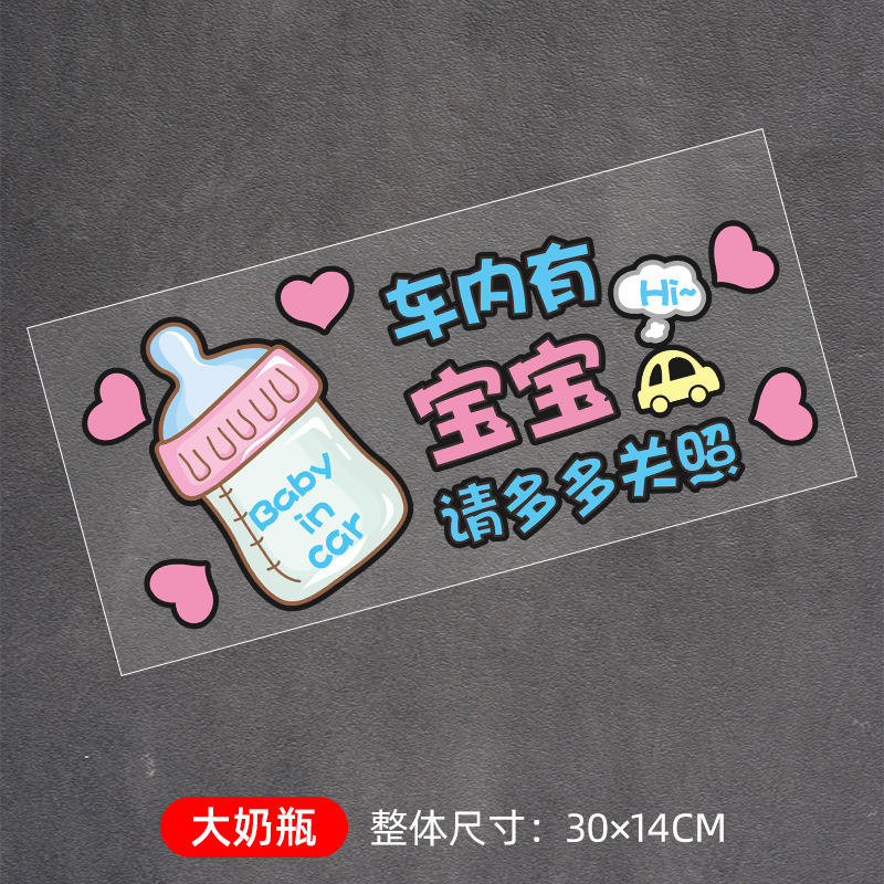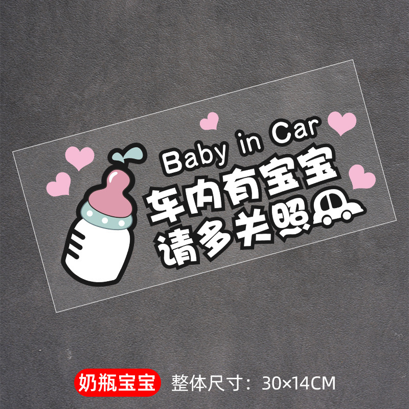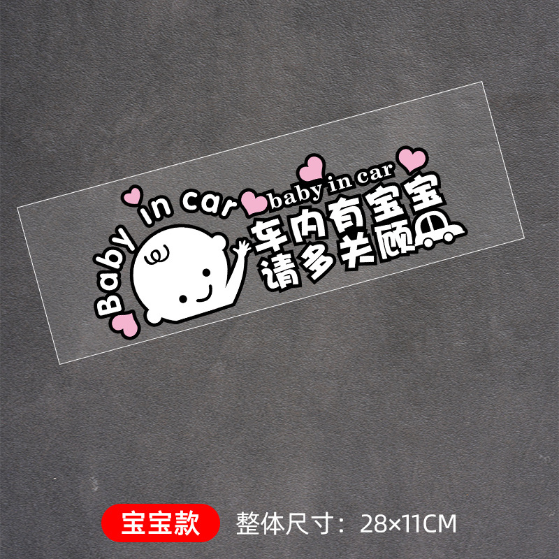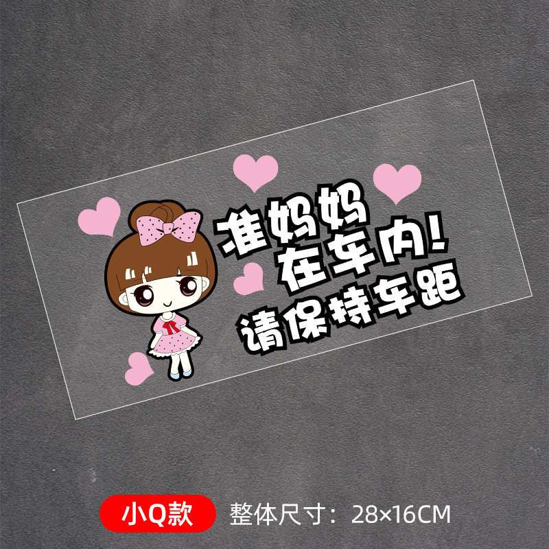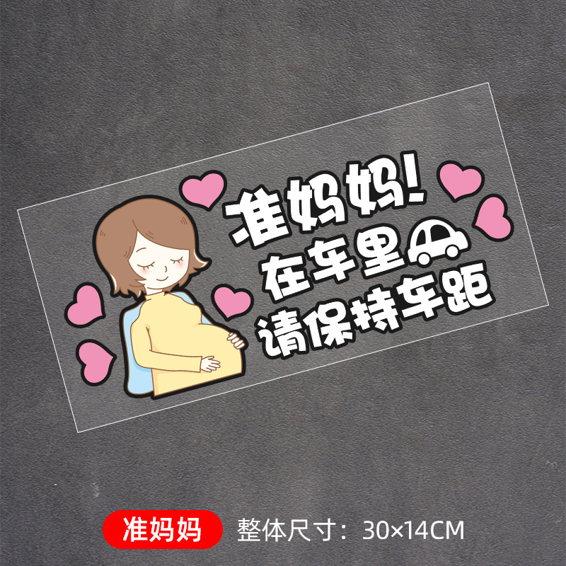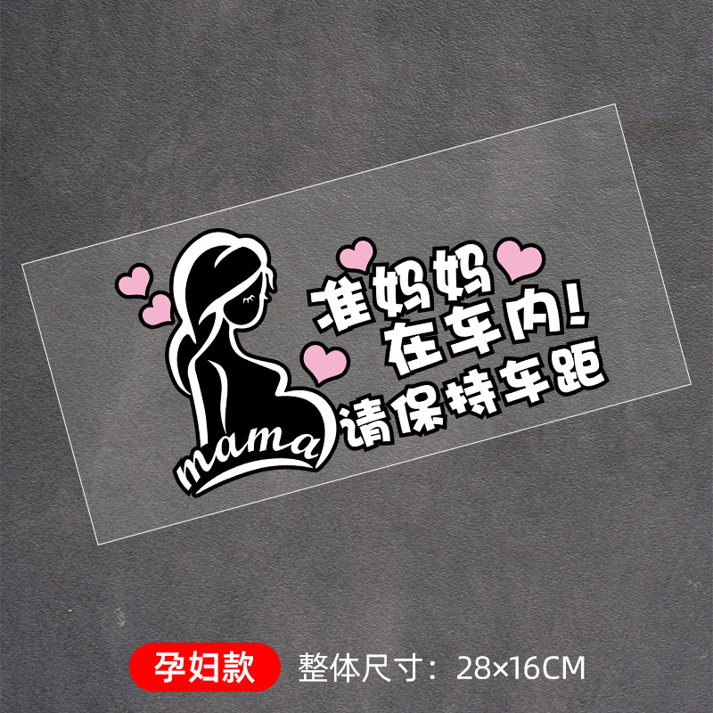차 안 아기 자동차 스티커 있습니다. 크리에이티브 텍스트. 엄마가 될 사람은 차와 뒷 창문 사이의 거리를 유지하십시오. 경고 스티커스토어 가기