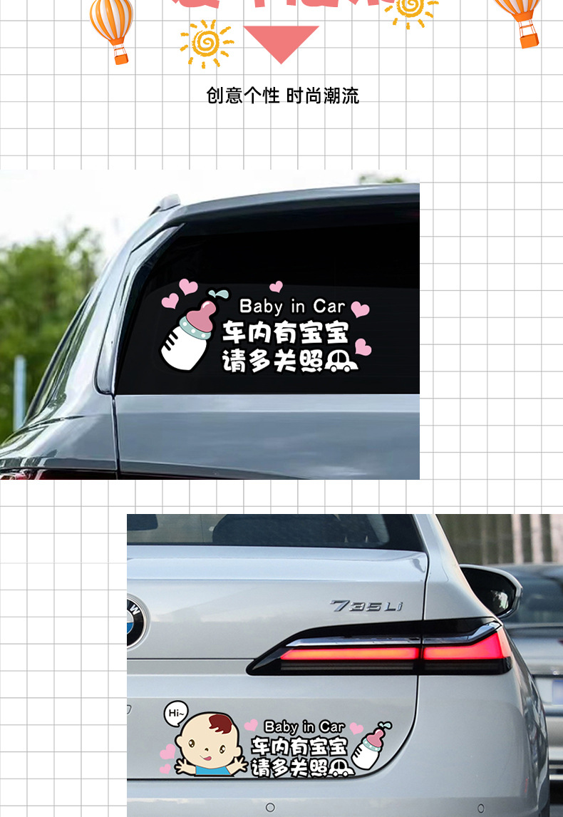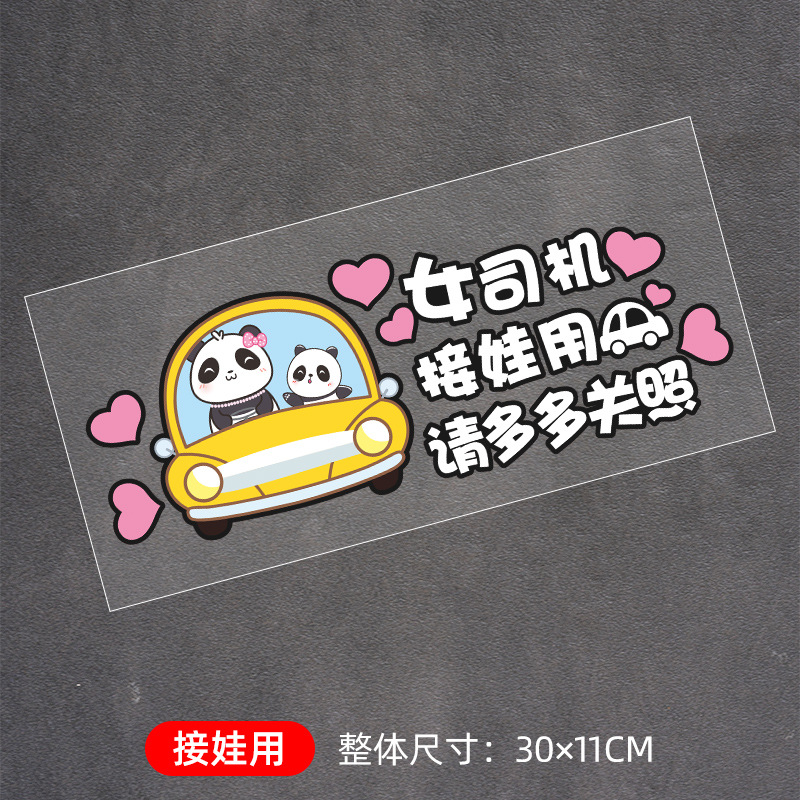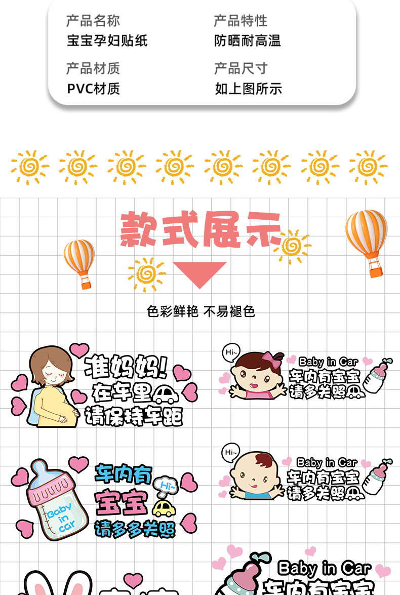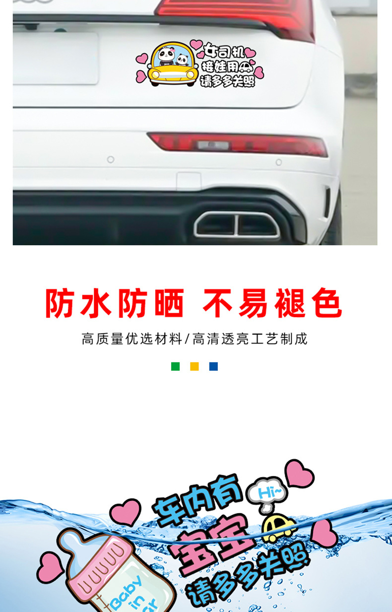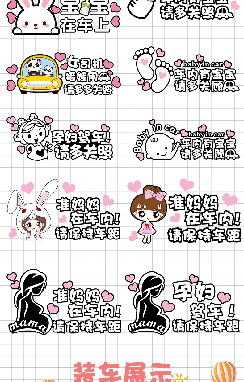 차 안 아기 자동차 스티커 있습니다. 크리에이티브 텍스트. 엄마가 될 사람은 차와 뒷 창문 사이의 거리를 유지하십시오. 경고 스티커스토어 가기