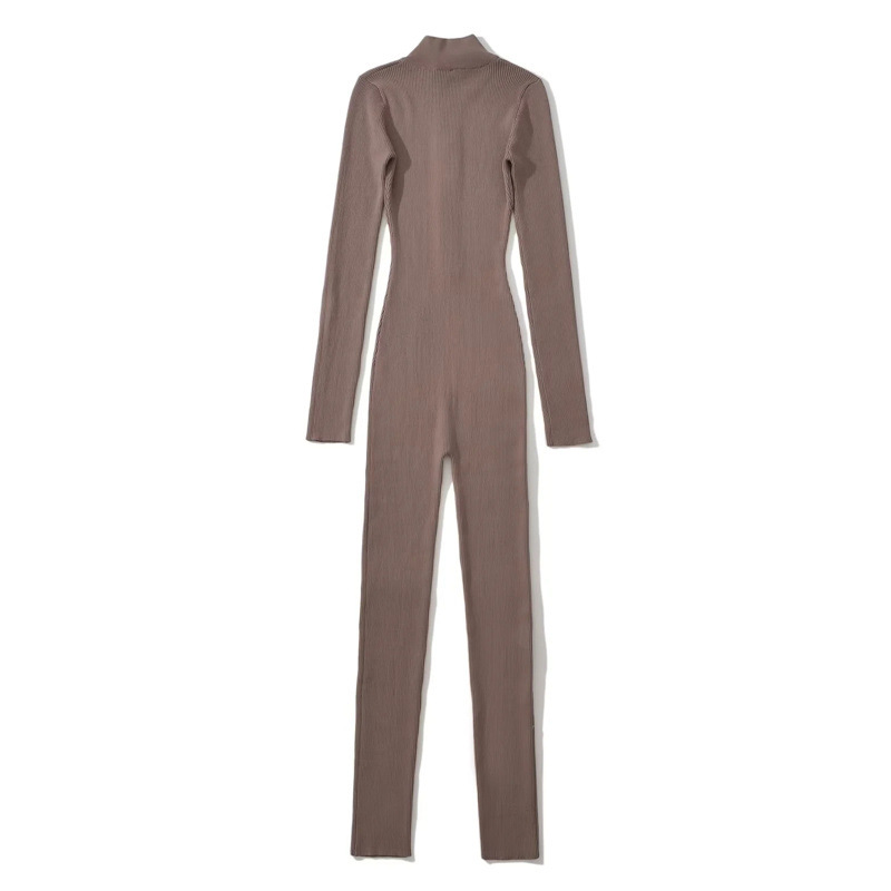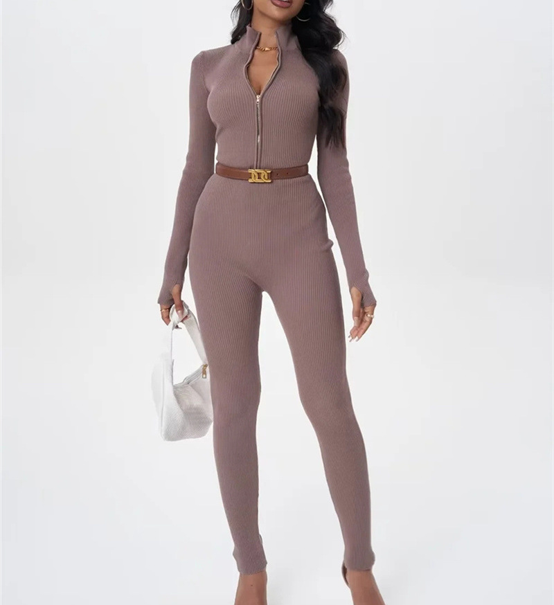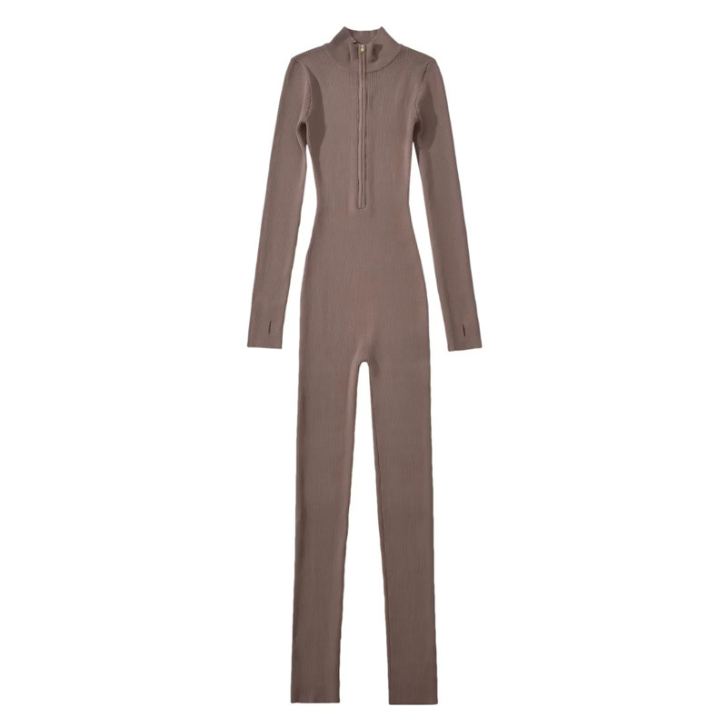 유럽과 미국 스타일 섹시한 탄성 꽉 칼라 지퍼 긴 소매 니트 다리 점프 수트 캐주얼 스포츠 점프 슈트 여성용스토어 가기