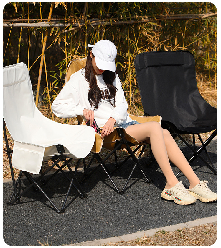 야외 캠핑 레저 접이식 의자 휴대용 3 레이어 코튼 하이 백 문 의자 캠핑 해변 예술 의자 낚시 의자