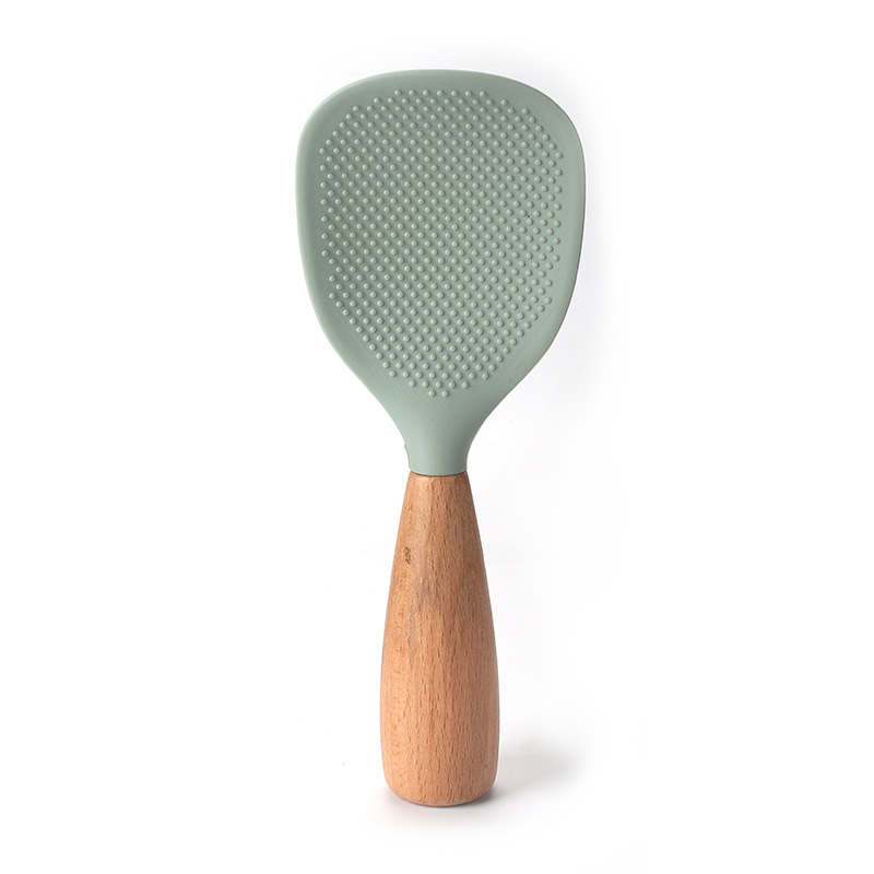 실리콘 주걱 비 스틱 팬 특수 가정용 고온 내성 요리 주걱 확장 나무 손잡이 주걱 낚시 울타리는 쌀 숟가락을 견딜 수 있습니다.스토어 가기