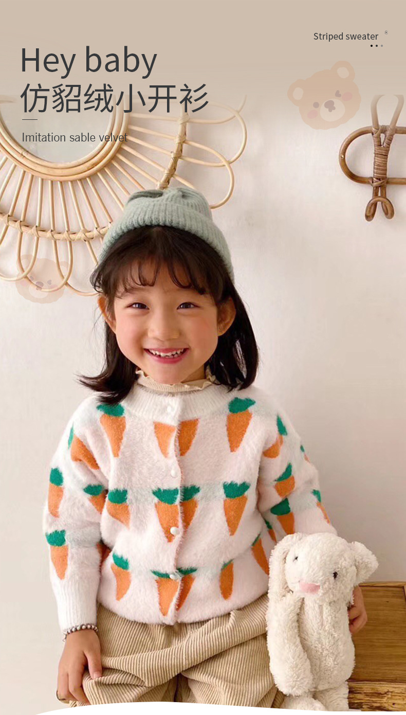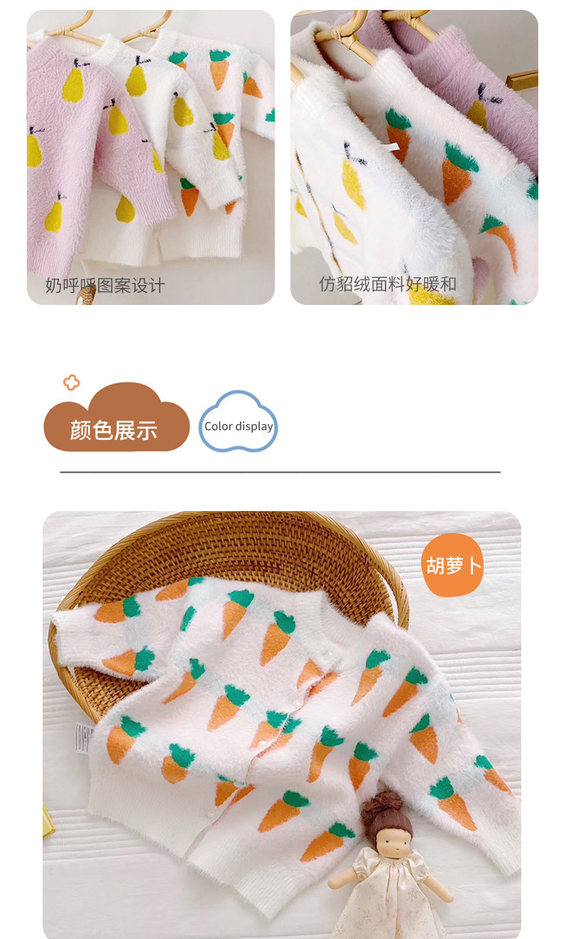 [깜짝] 여자 스웨터 어린이 모조 밍크 벨벳 카디건 두껍게 기모 밍크 가을 아기 가을 겨울스토어 가기