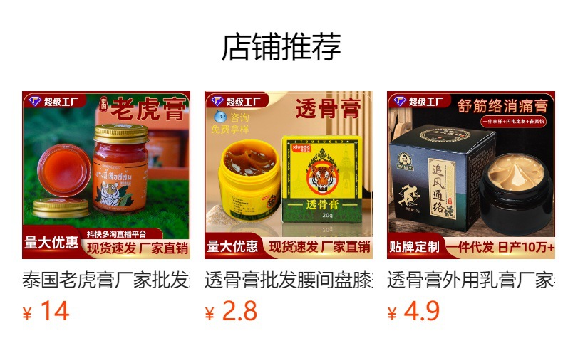 타이 타이거 크림 전자 상거래 라이브 폭발 단체 구입 공급 태국 뼈 크림 타이거 크림 마사지 크림 헤어 세대