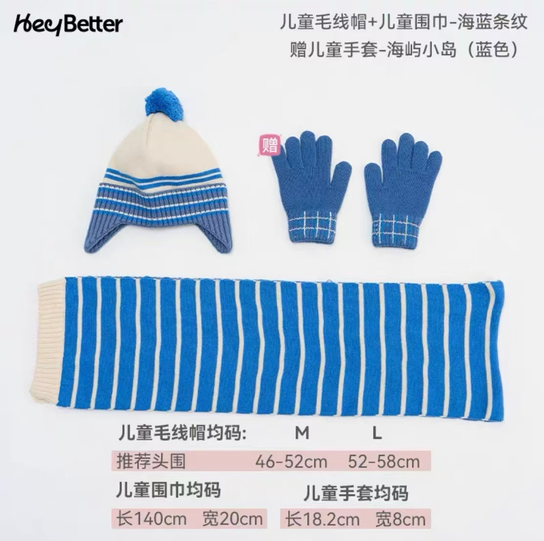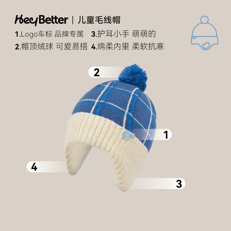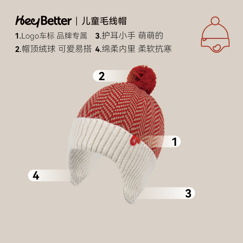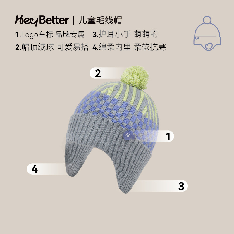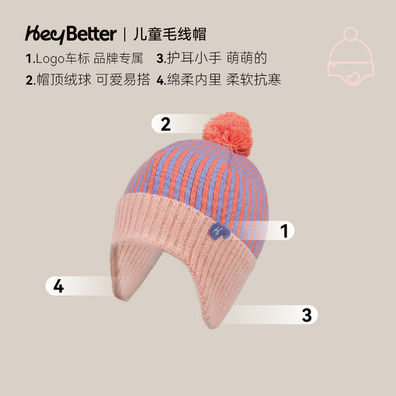 正品2023HeyBetter儿童毛线帽防风抗起球抗静电毛线帽手套整套