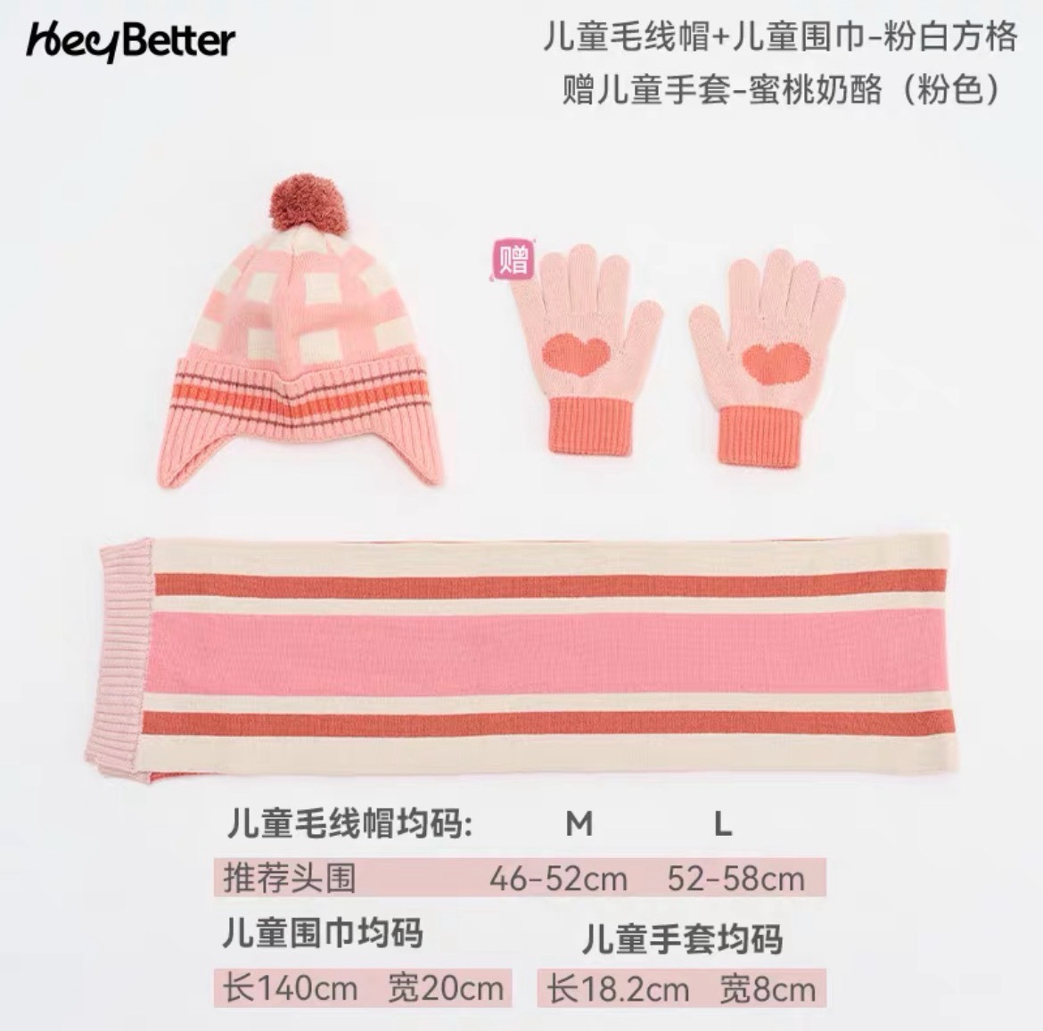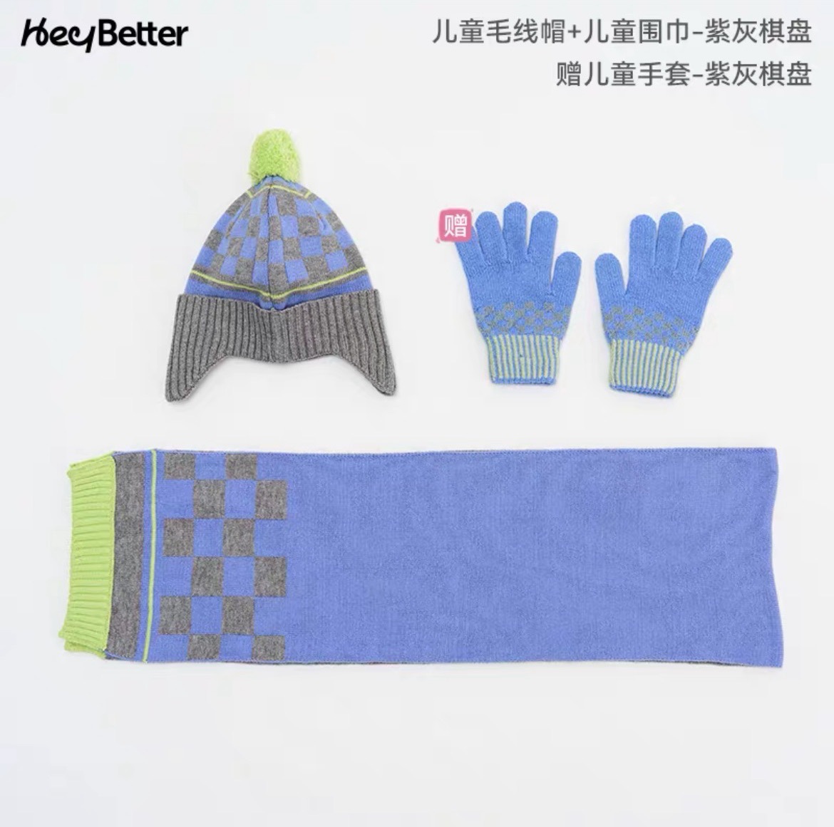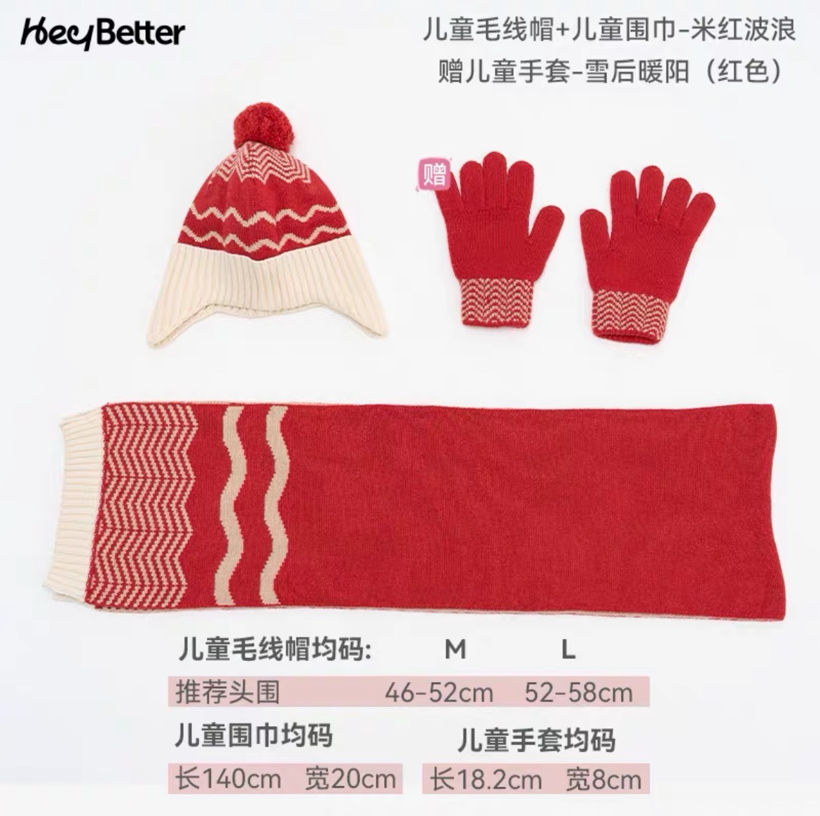 正品2023HeyBetter儿童毛线帽防风抗起球抗静电毛线帽手套整套