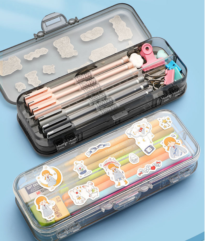 Chenyu 투명 필통 더블 클로저 일본식 대용량 심플하고 귀여운 중학생 고급 문구 상자 필통