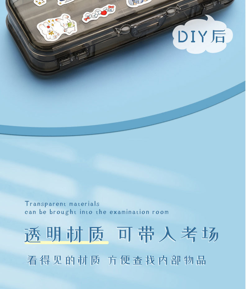 Chenyu 투명 필통 더블 클로저 일본식 대용량 심플하고 귀여운 중학생 고급 문구 상자 필통스토어 가기
