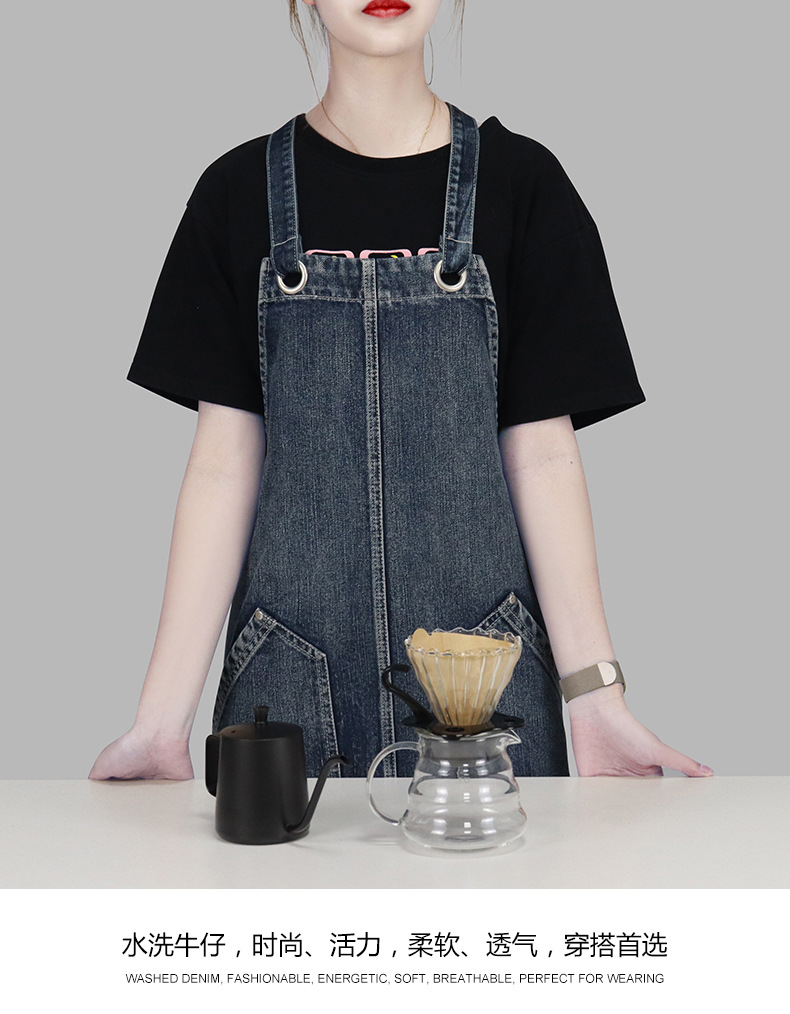 대외 무역 아마존 세척 물 데님 앞치마 서양 레스토랑 카페 우유 차 가게 베이킹 남성과 여성의 작업복 인쇄 로고