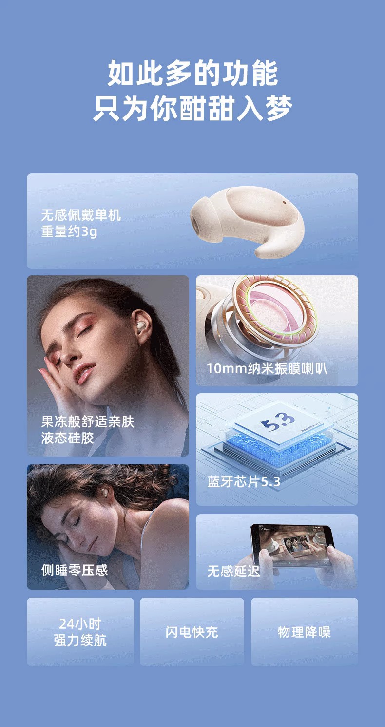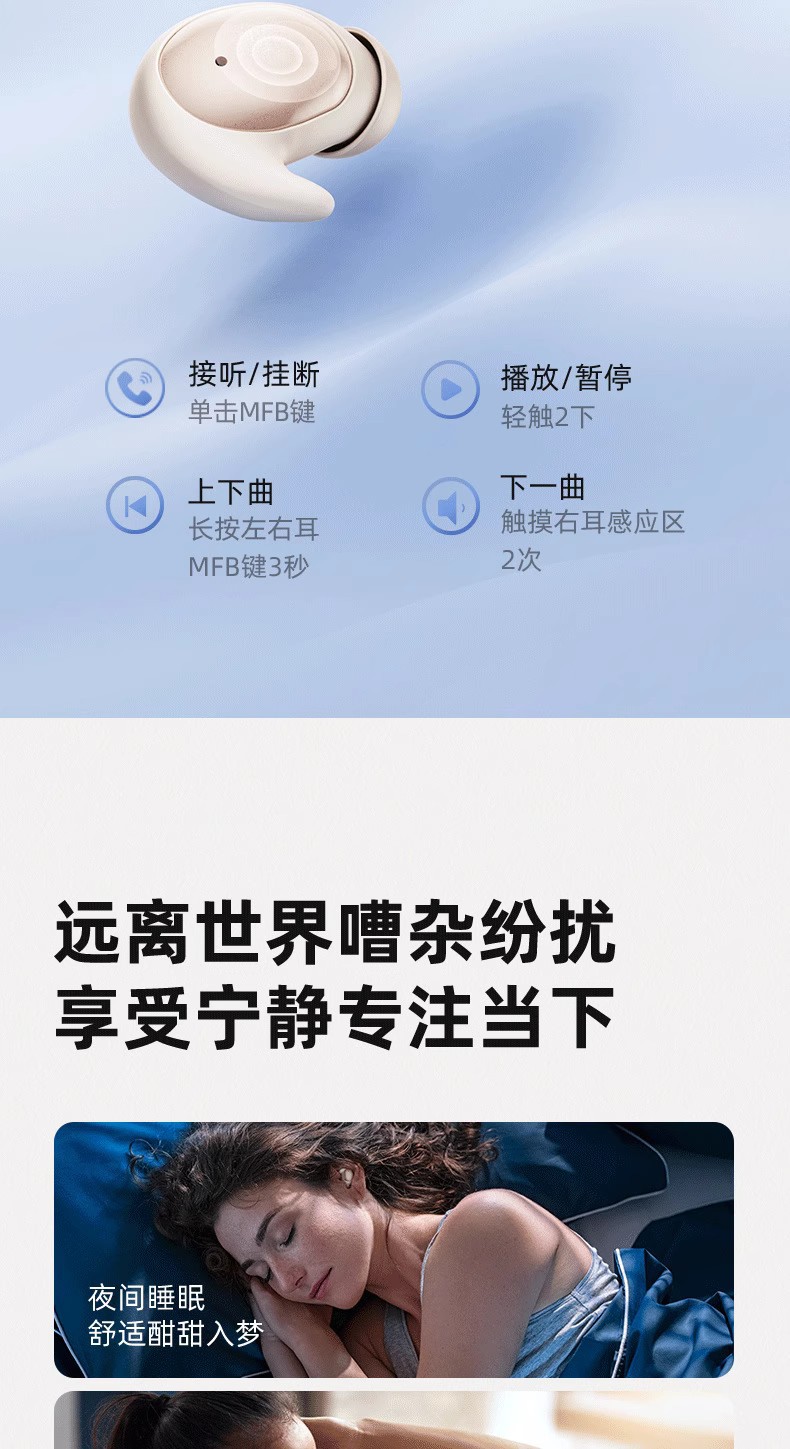 측면 수면용 크로스보더 수면 블루투스 헤드셋, 수면용 특수 ASMR 수면 이어폰형 소음 감소, 초방음 미니 노스토어 가기