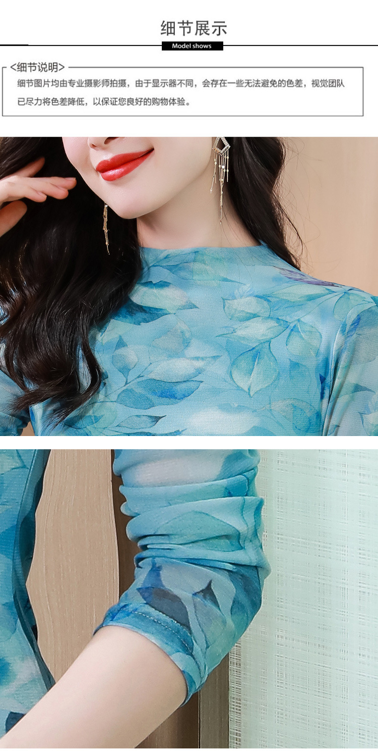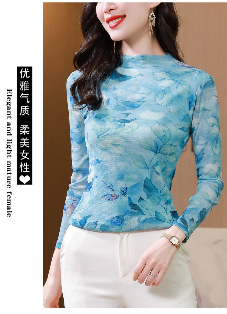 재고 기모 두꺼운 메쉬 프린트 티셔츠 여자의 2023 가을 새로운 스트레치 슬림 탑 긴 소매 베이스 셔츠