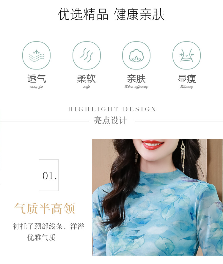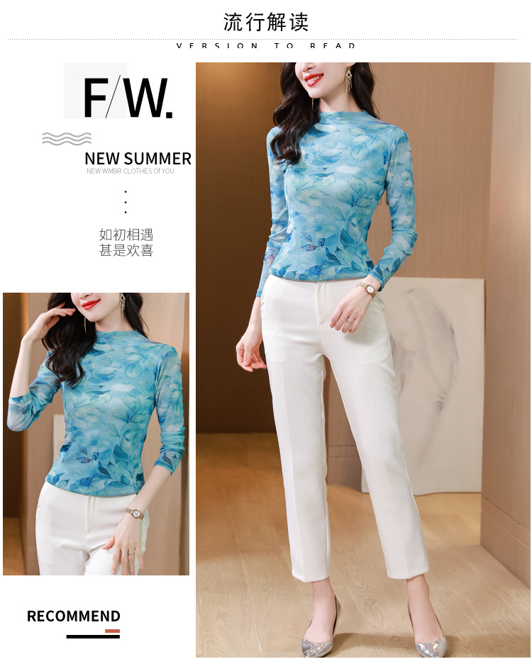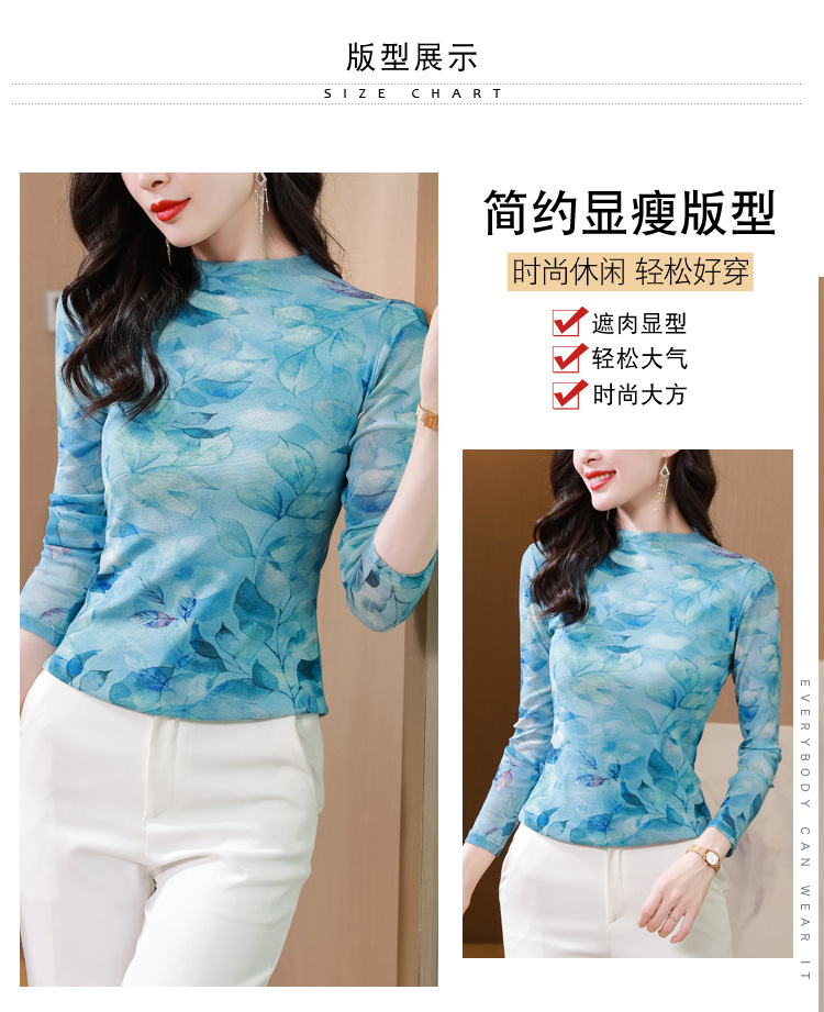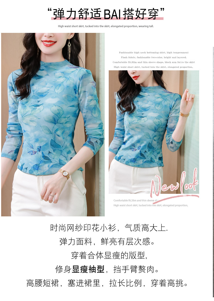 재고 기모 두꺼운 메쉬 프린트 티셔츠 여자의 2023 가을 새로운 스트레치 슬림 탑 긴 소매 베이스 셔츠스토어 가기