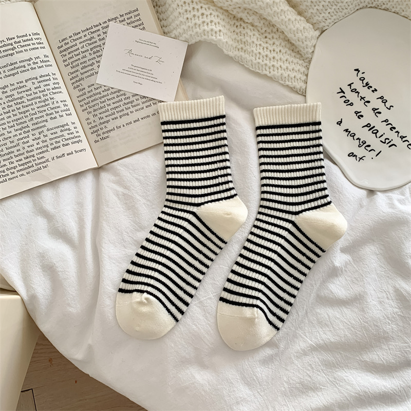 양말 여성 가을과 겨울 새로운 흑백 줄무늬 부드러운 벨벳 따뜻한 따뜻한 숙녀 캐시미어 양말스토어 가기
