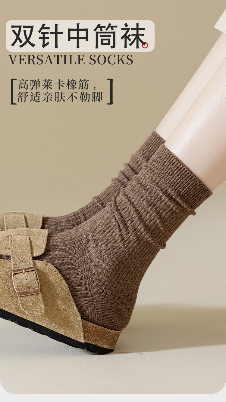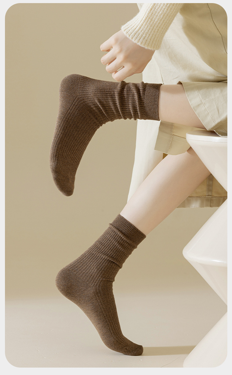 양말 가을 여성용 통기성 탈취제 무지 줄무늬 중간 길이 양말 여성용 커피색 메일라드 땀 흡수 가을 겨울 순면 여성 양말스토어 가기