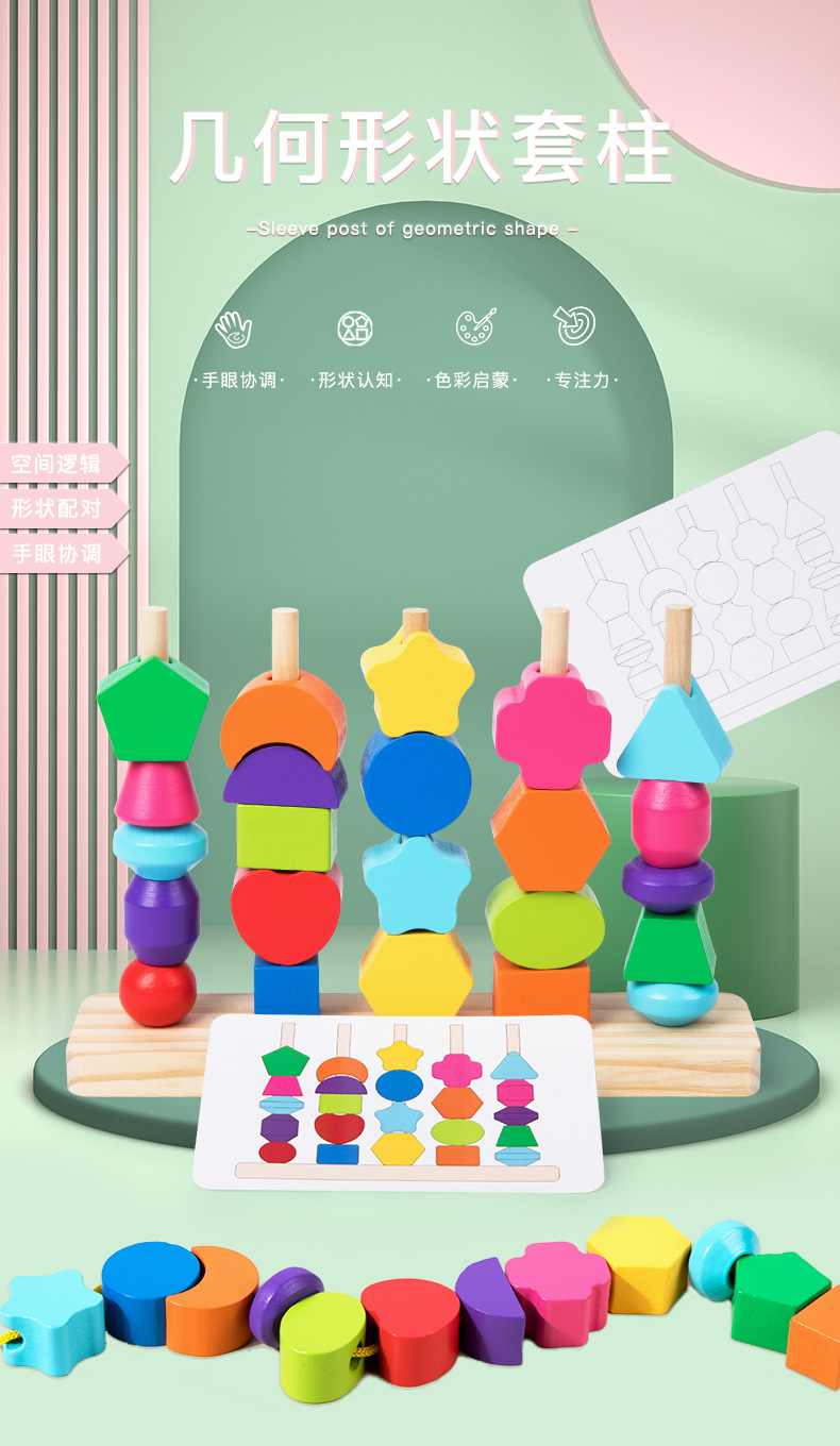 국경 간 나무 5 열 구슬 기둥 색상 모양인지 기하학적 모양 매칭 빌딩 블록 퍼즐 장난감스토어 가기
