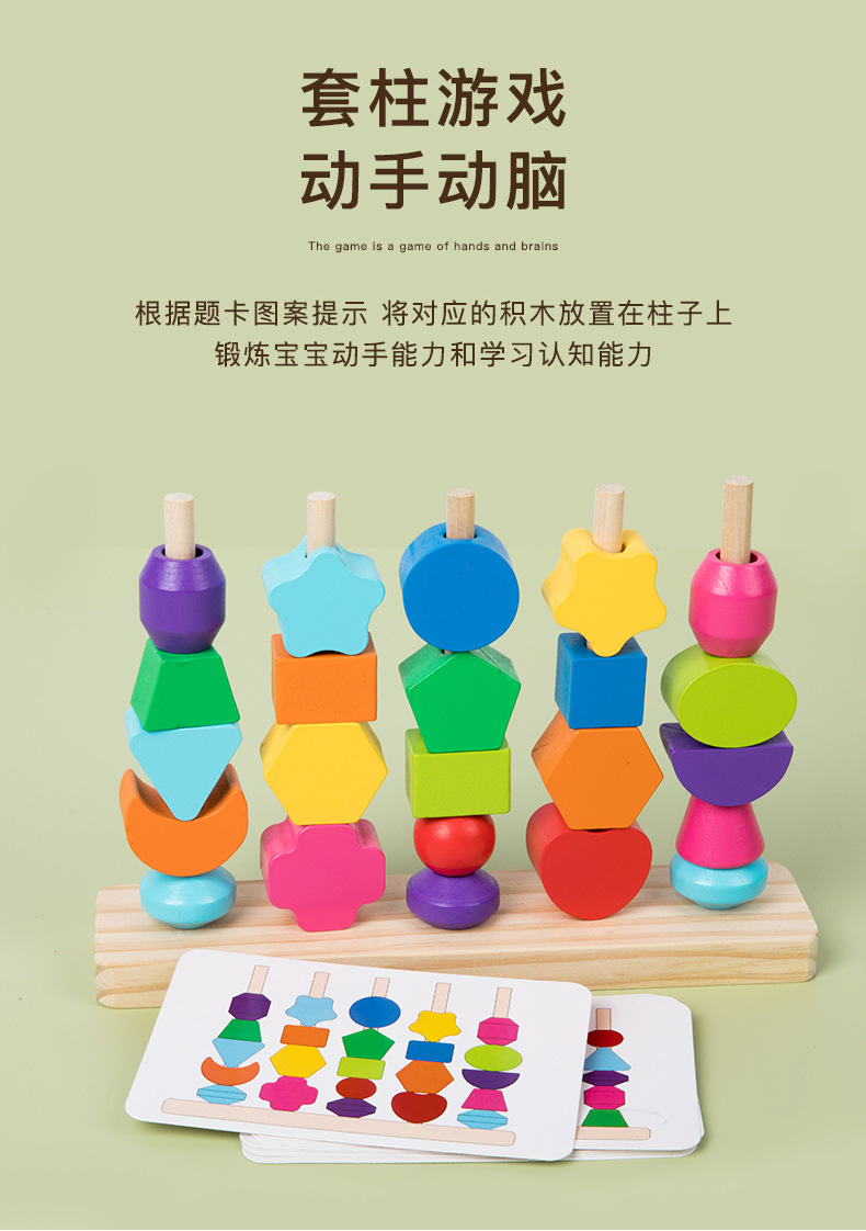 국경 간 나무 5 열 구슬 기둥 색상 모양인지 기하학적 모양 매칭 빌딩 블록 퍼즐 장난감