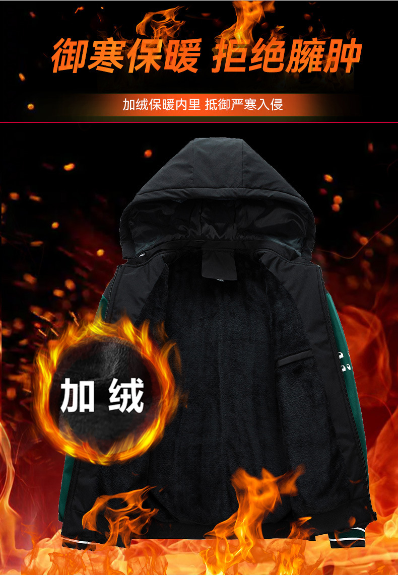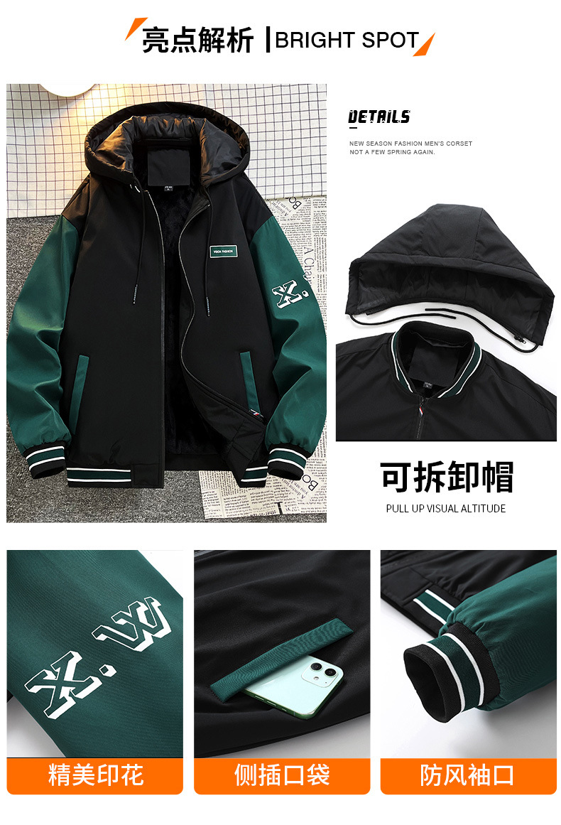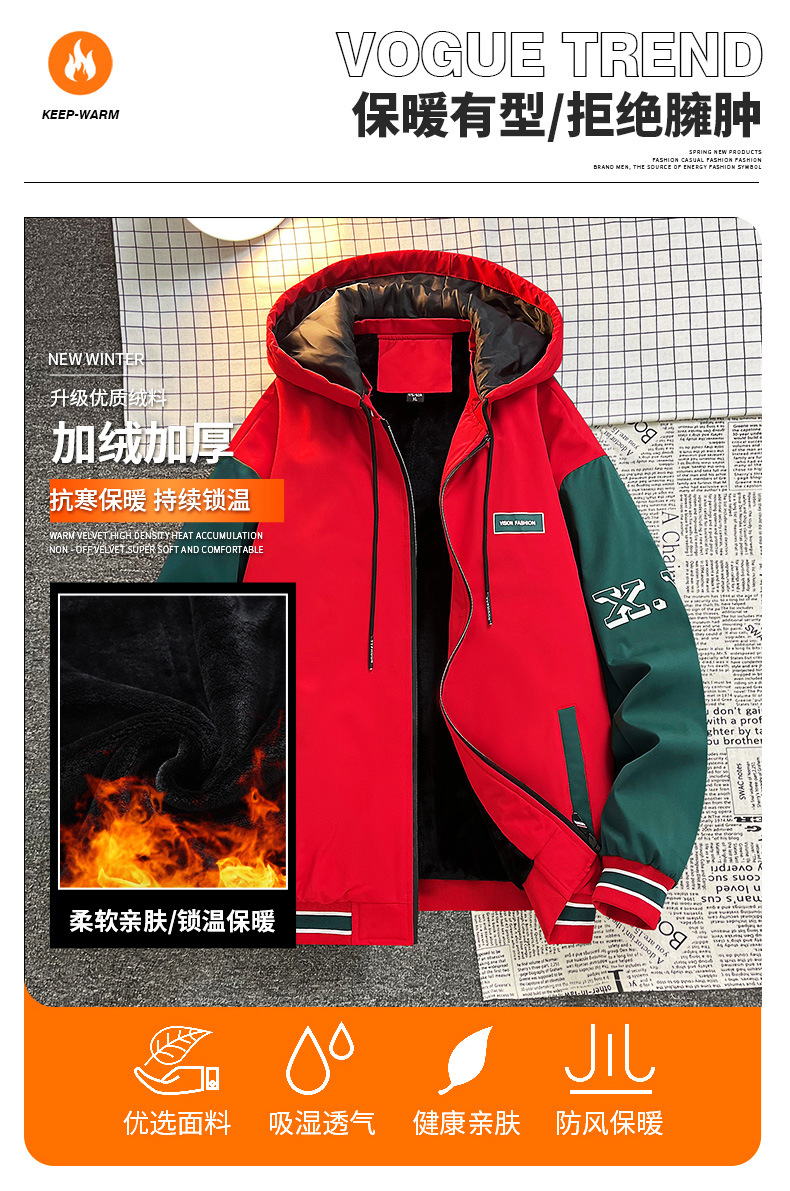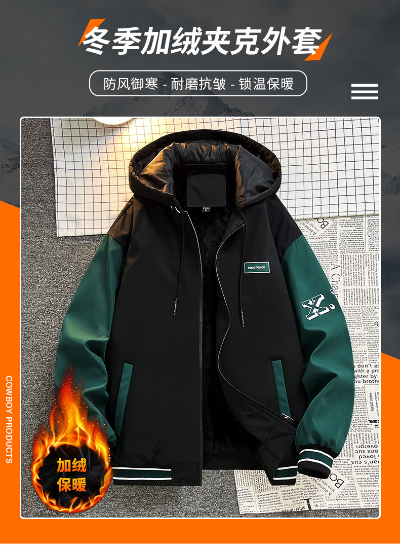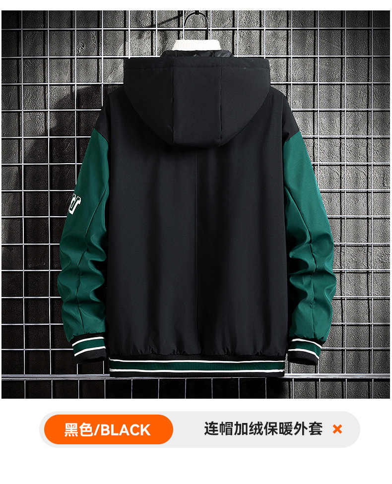 가을과 겨울 트렌디 한 남자의 잘 생긴 패션 컬러 블록 인쇄 후드 재킷 통통 큰 사이즈 느슨한 캐주얼 기모 두꺼운 재킷스토어 가기