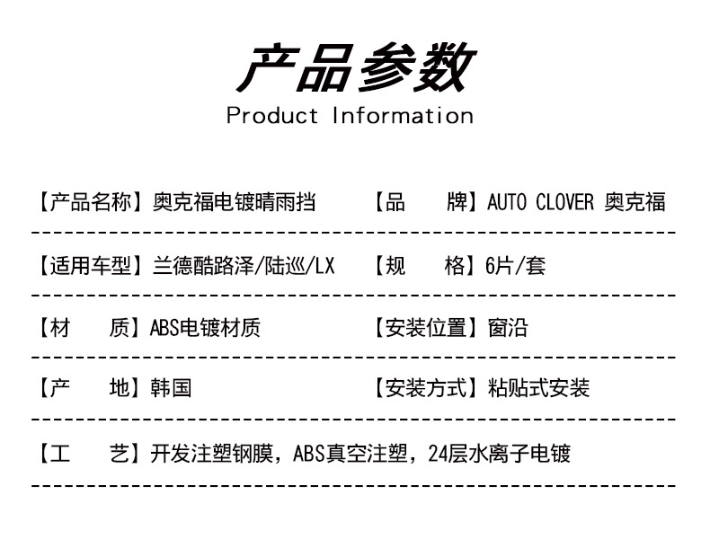 Oakford는 Toyota Land Cruiser LC300 수정 된 전기 도금 레인 쉴드 창 비 눈썹 레인 블랙스토어 가기