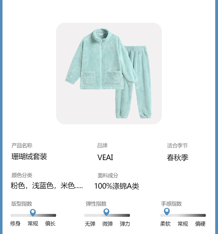 남아용 홈웨어 A급 산호벨벳 폴리에스터 어린이 가을 겨울 플란넬 여아용 잠옷 세트 추가 보온 및 정전기 방지스토어 가기