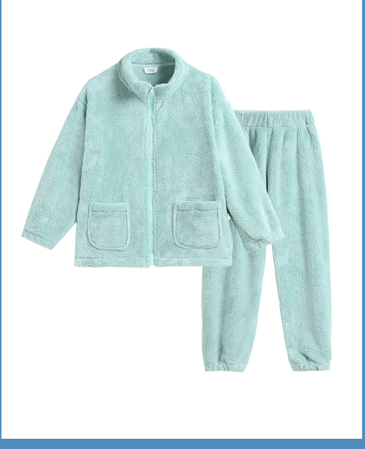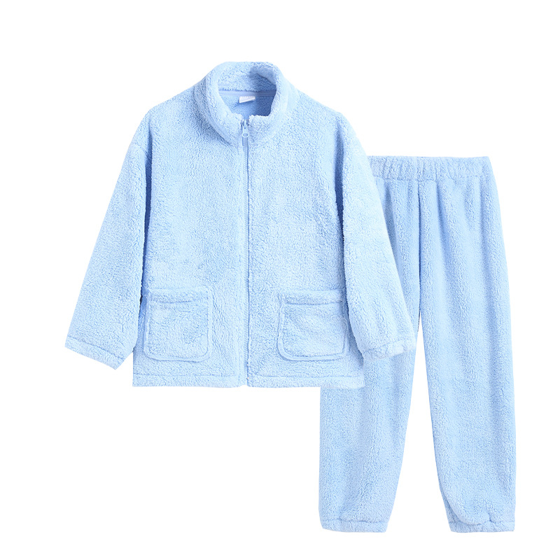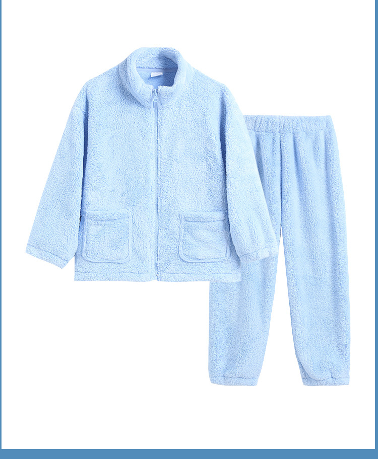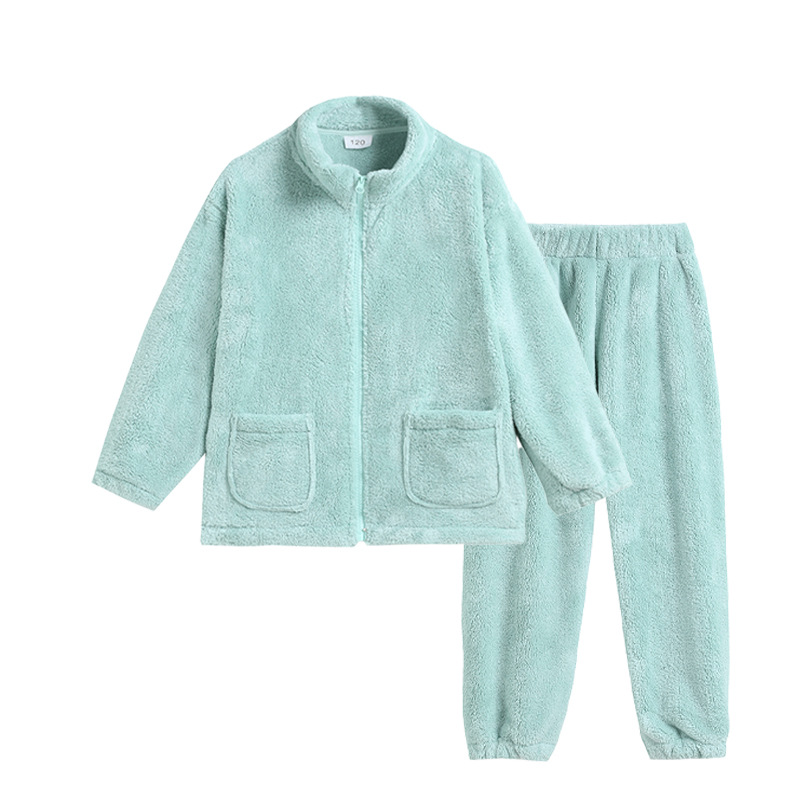 남아용 홈웨어 A급 산호벨벳 폴리에스터 어린이 가을 겨울 플란넬 여아용 잠옷 세트 추가 보온 및 정전기 방지