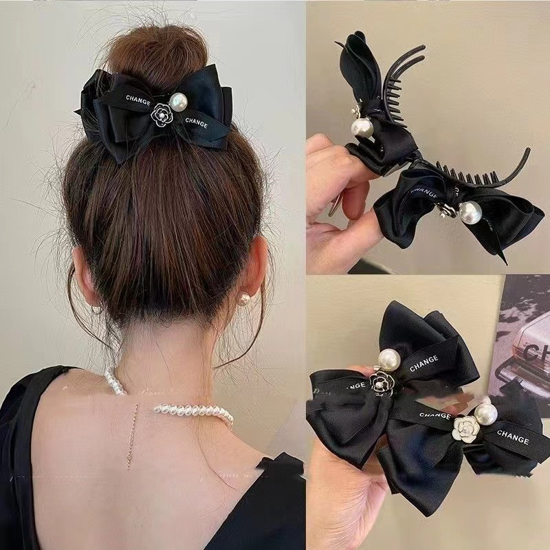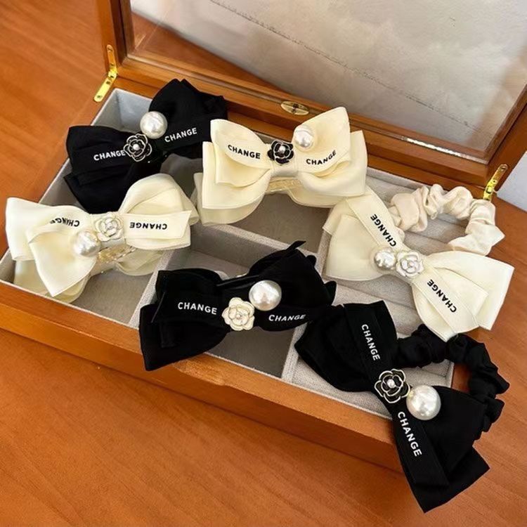 기질 활 동백 헤어 링 흑백 글자 헤드 로프 고급 대장 상어 클립 헤어 포니테일 클립
