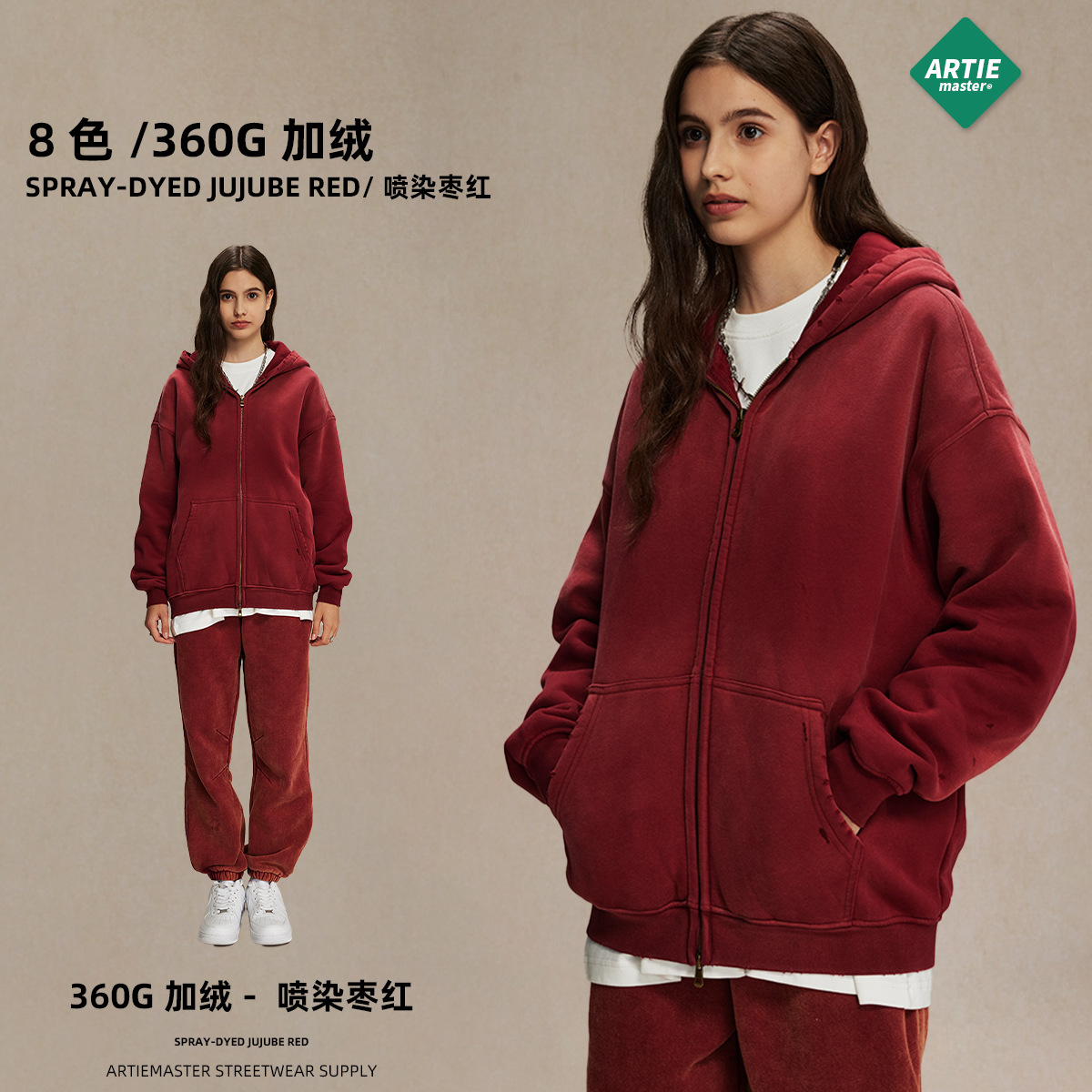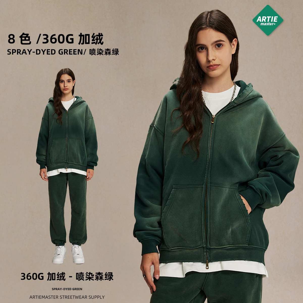ARTIE 남성 의류 | 2025 겨울 의류 두꺼운 스프레이 염색 오래된 양방향 지퍼 유행 브랜드 남성 운동복 남성과 여성을위한 빨 까마귀스토어 가기