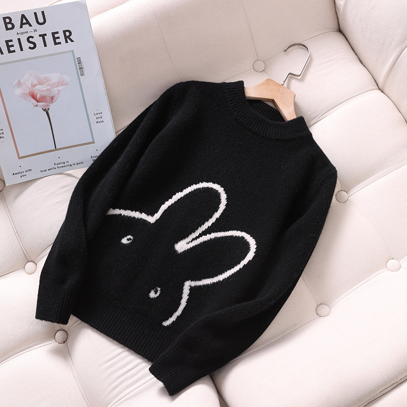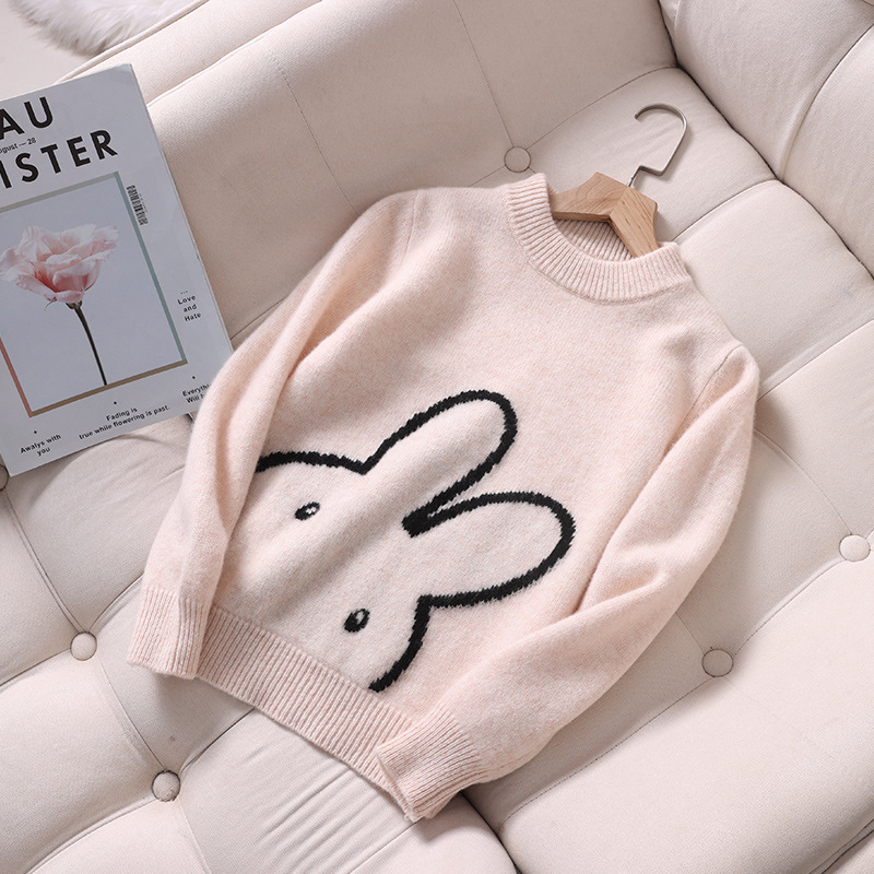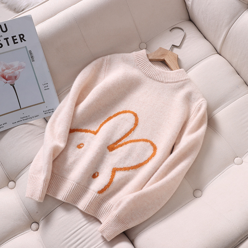 소년과 소녀를위한 새로운 고급 아동용 순수 울 니트웨어 느슨한 두꺼운 토끼 아기 캐시미어 스웨터