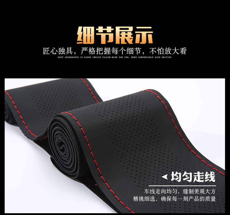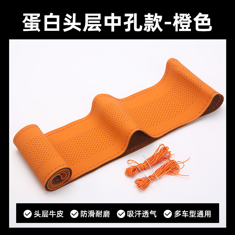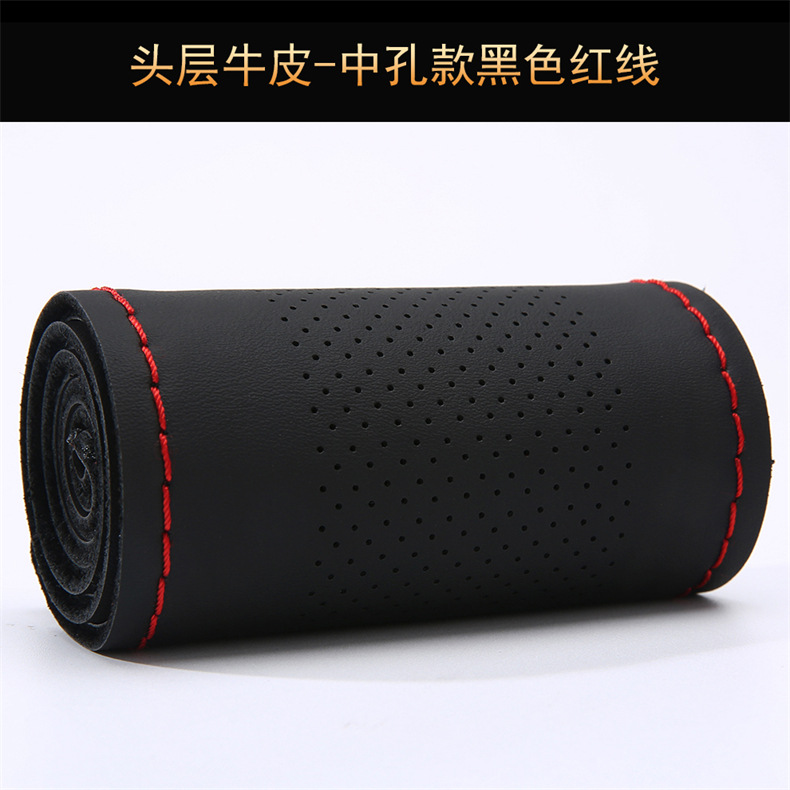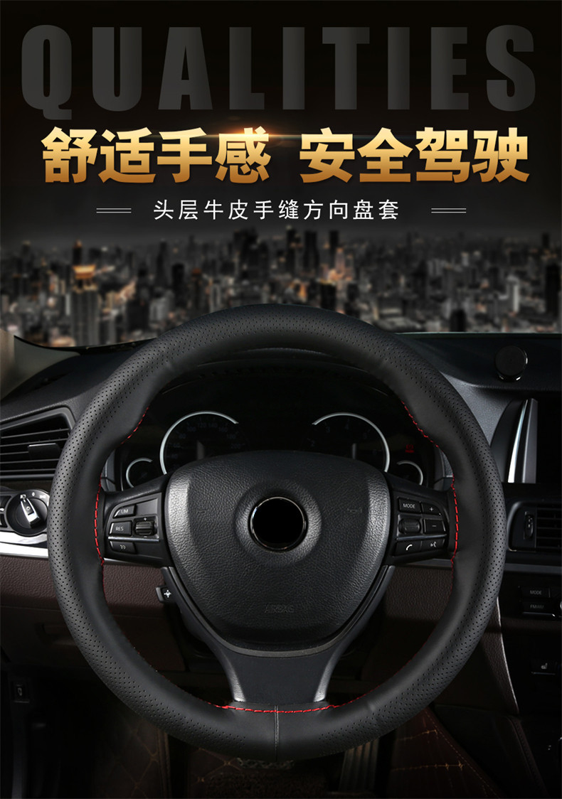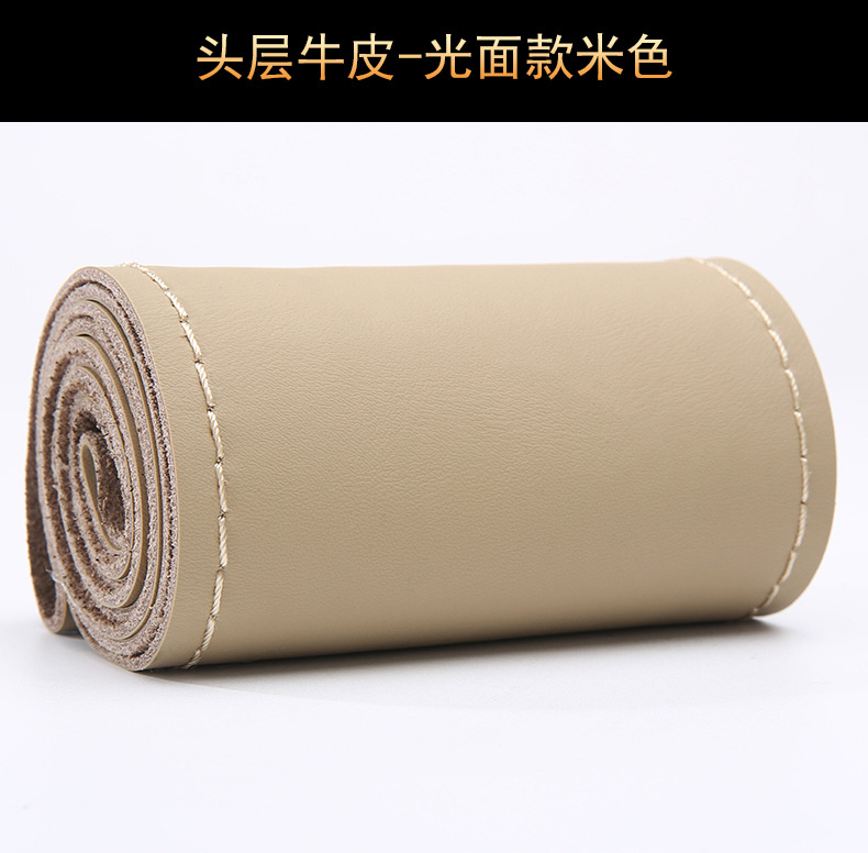 가죽 자동차 핸들 커버의 첫 번째 레이어 가죽 핸드 스티치 남녀 사계절 유니버설 가죽 핸드 메이드 가죽 커버 미끄럼 방지 봉제스토어 가기