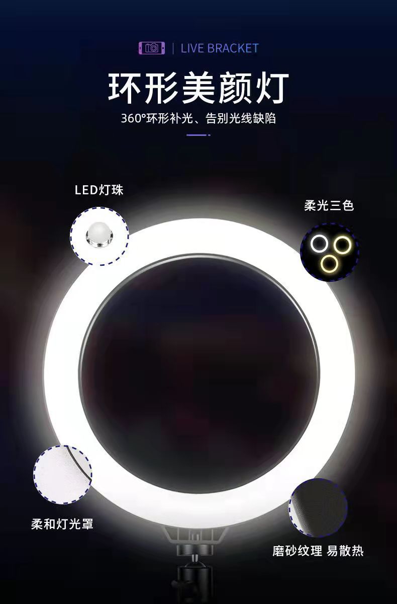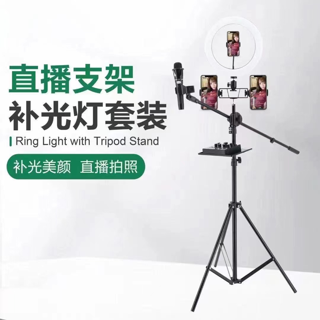 휴대폰 라이브 방송용 조명 스탠드 LED 링 조명, 스트리머 셀카 촬영용 플로어 삼각대 조명 세트스토어 가기