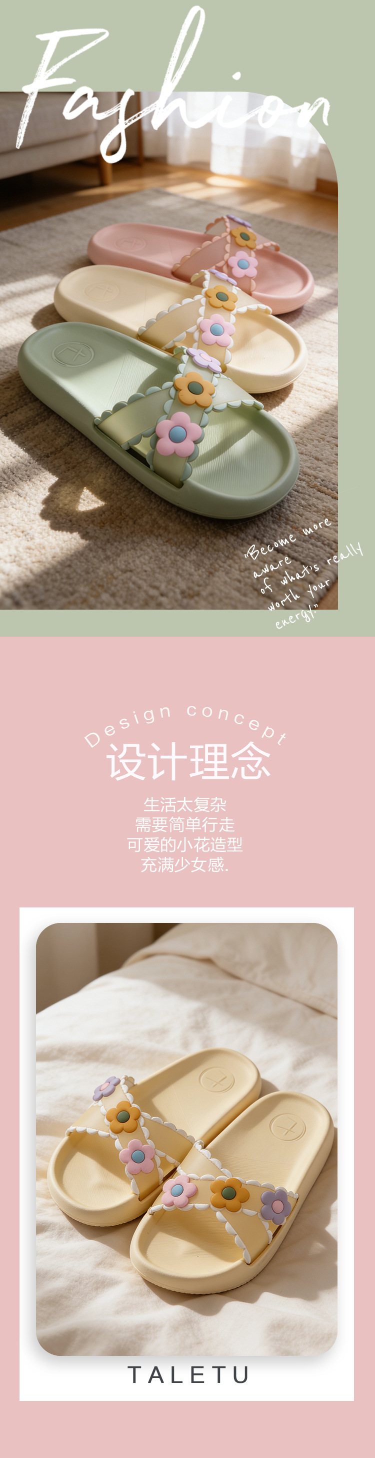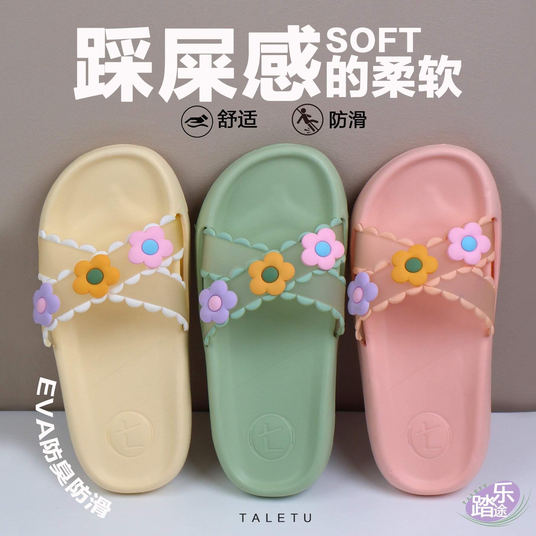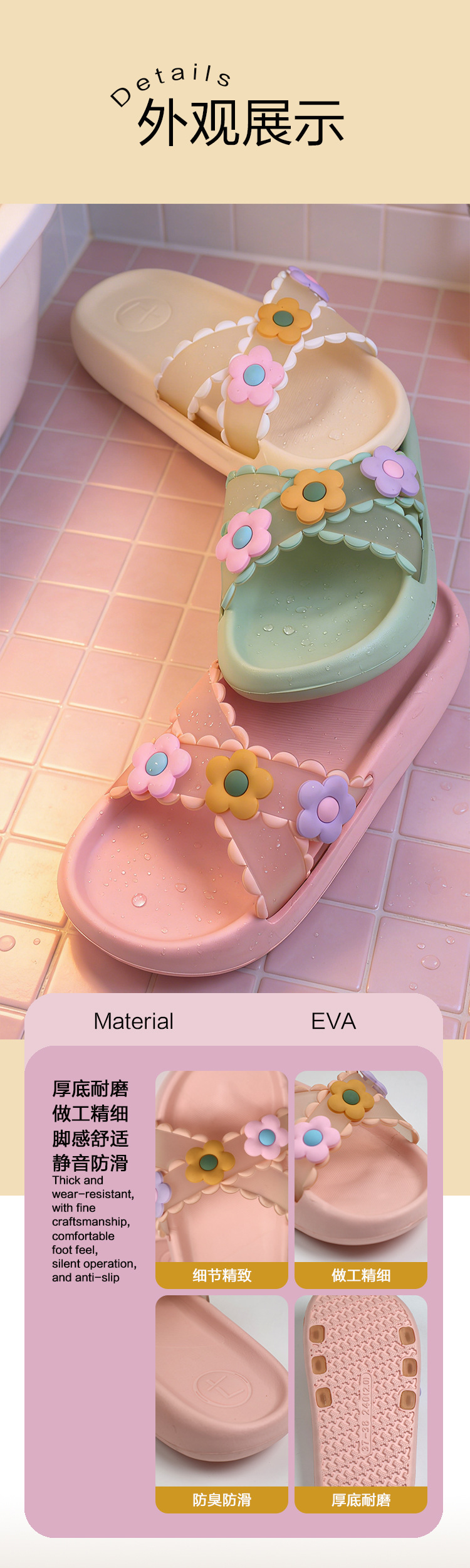 여성을 위한 새로운 EVA 귀여운 꽃 두꺼운 밑창 슬리퍼, 부드러운 밑창, 미끄럼 방지, 패셔너블하고 다재다능한 실내 및 실외 샌들 및 슬리퍼