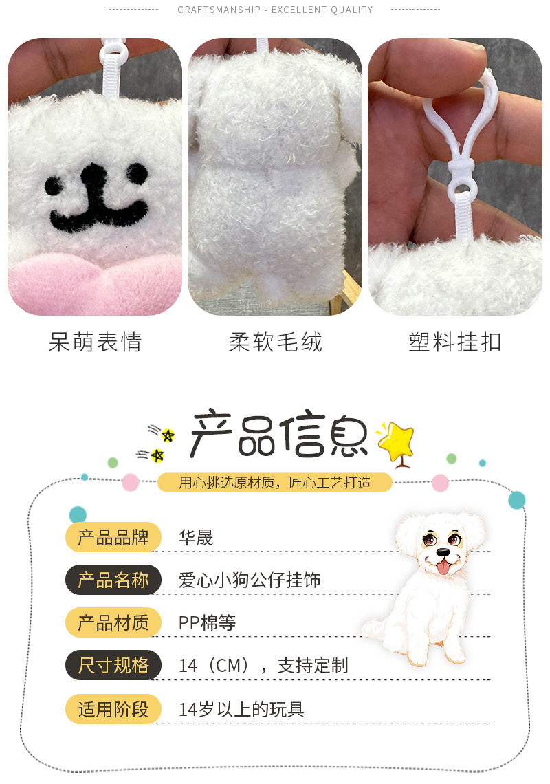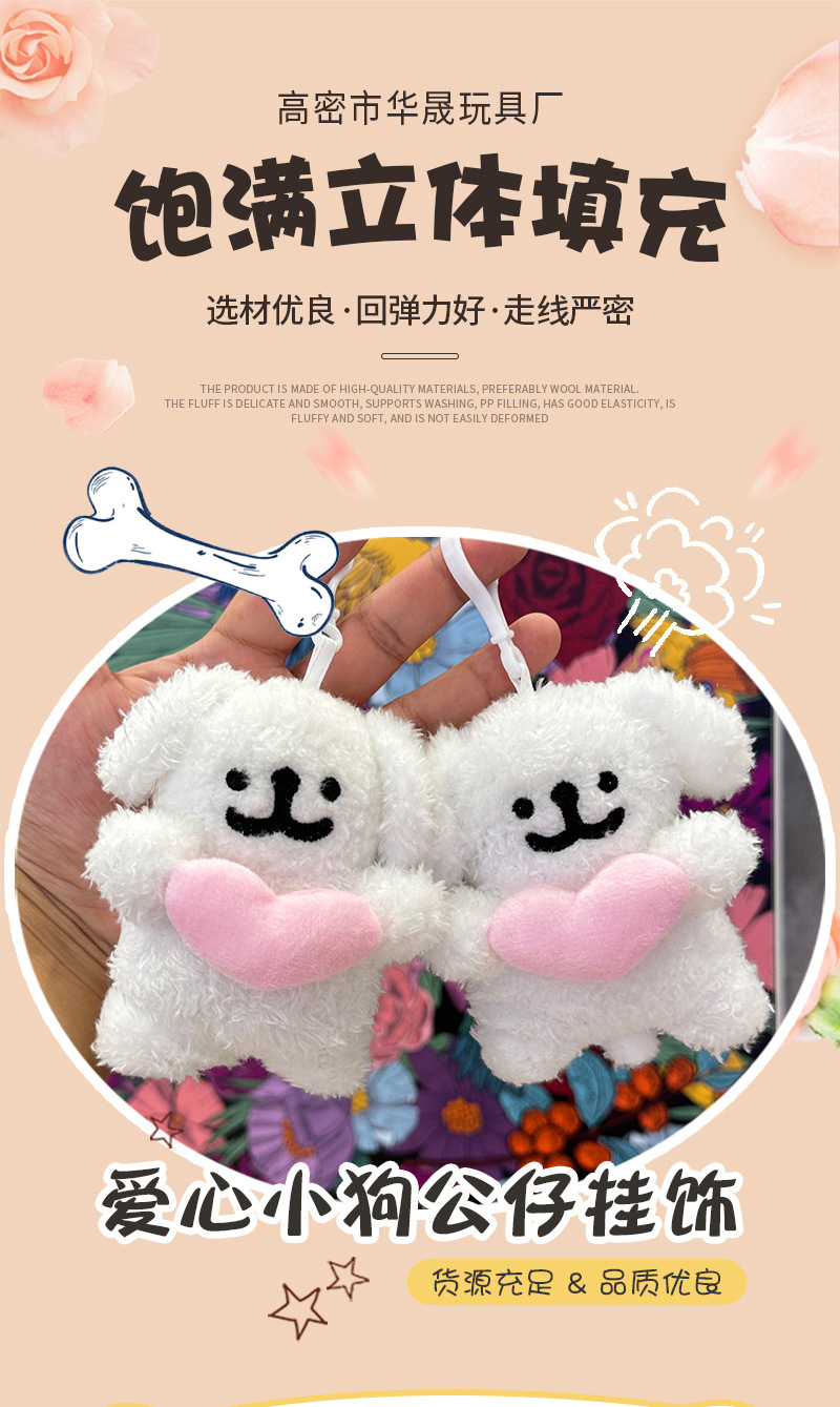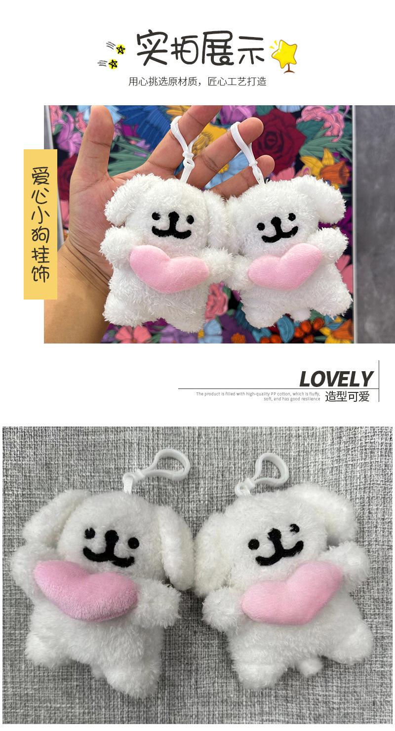흰색 사랑 강아지 펜던트 생일 선물 봉제 장난감 펜던트 개 인형 키 체인 펜던트스토어 가기