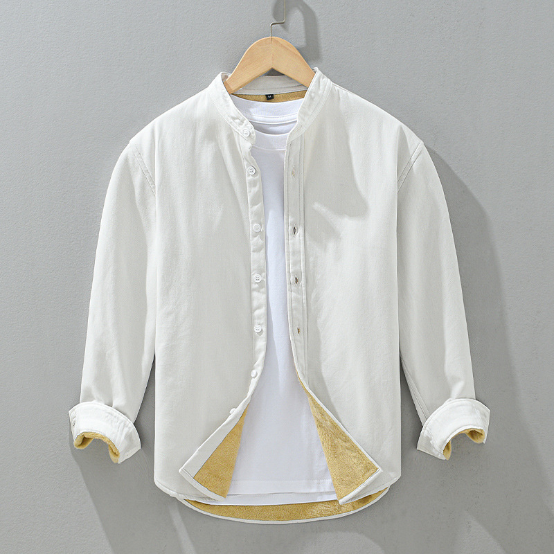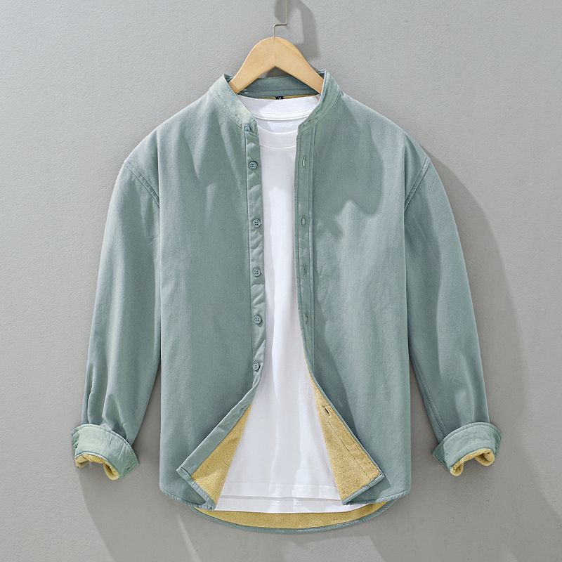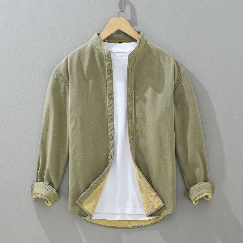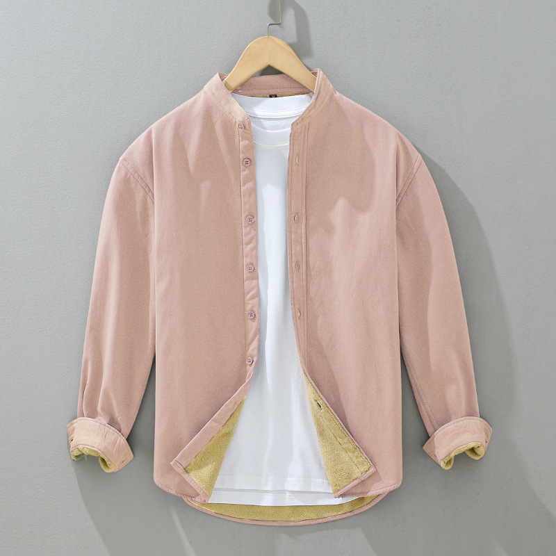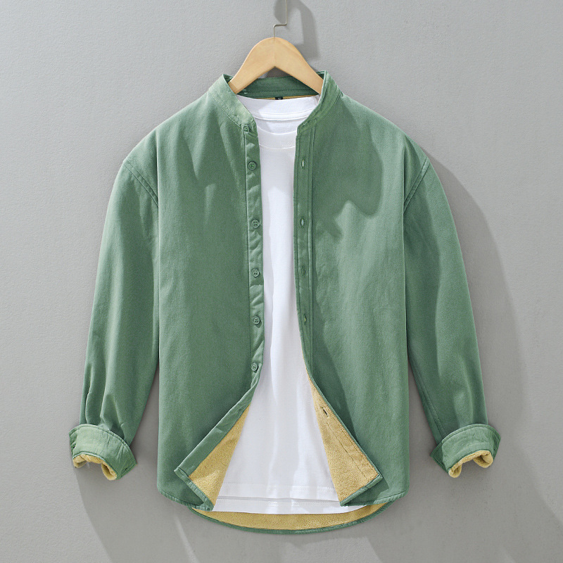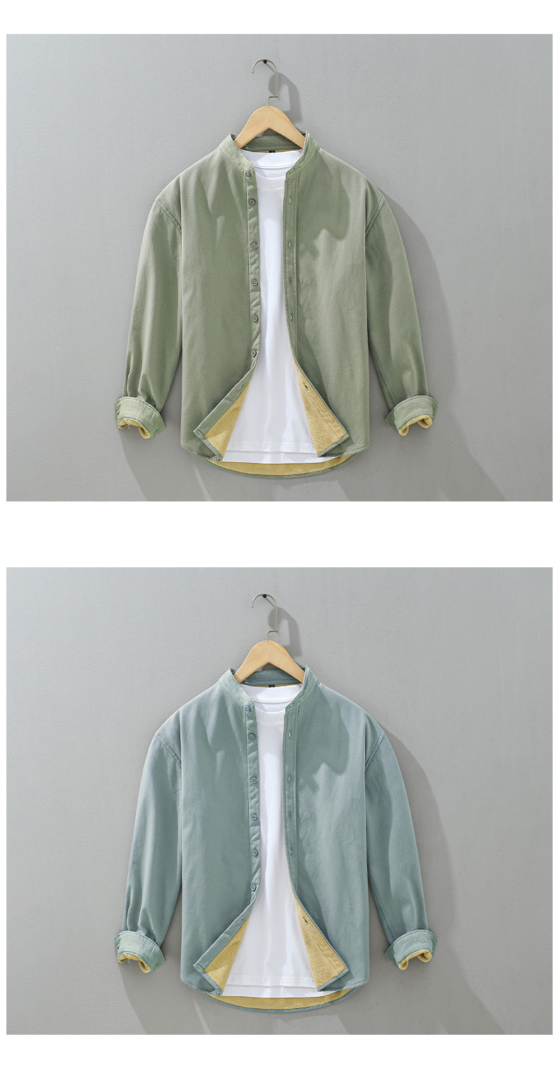 2324 가을과 겨울 관리 단색 기모 두꺼운 셔츠 남자의 긴 소매 합성 칼라 캐주얼 남자의 셔츠 재킷