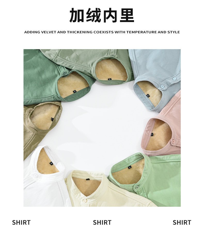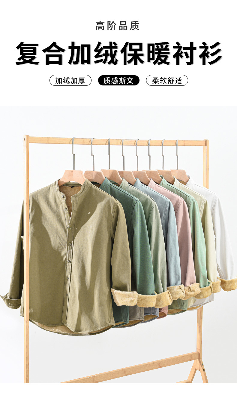2324 가을과 겨울 관리 단색 기모 두꺼운 셔츠 남자의 긴 소매 합성 칼라 캐주얼 남자의 셔츠 재킷스토어 가기