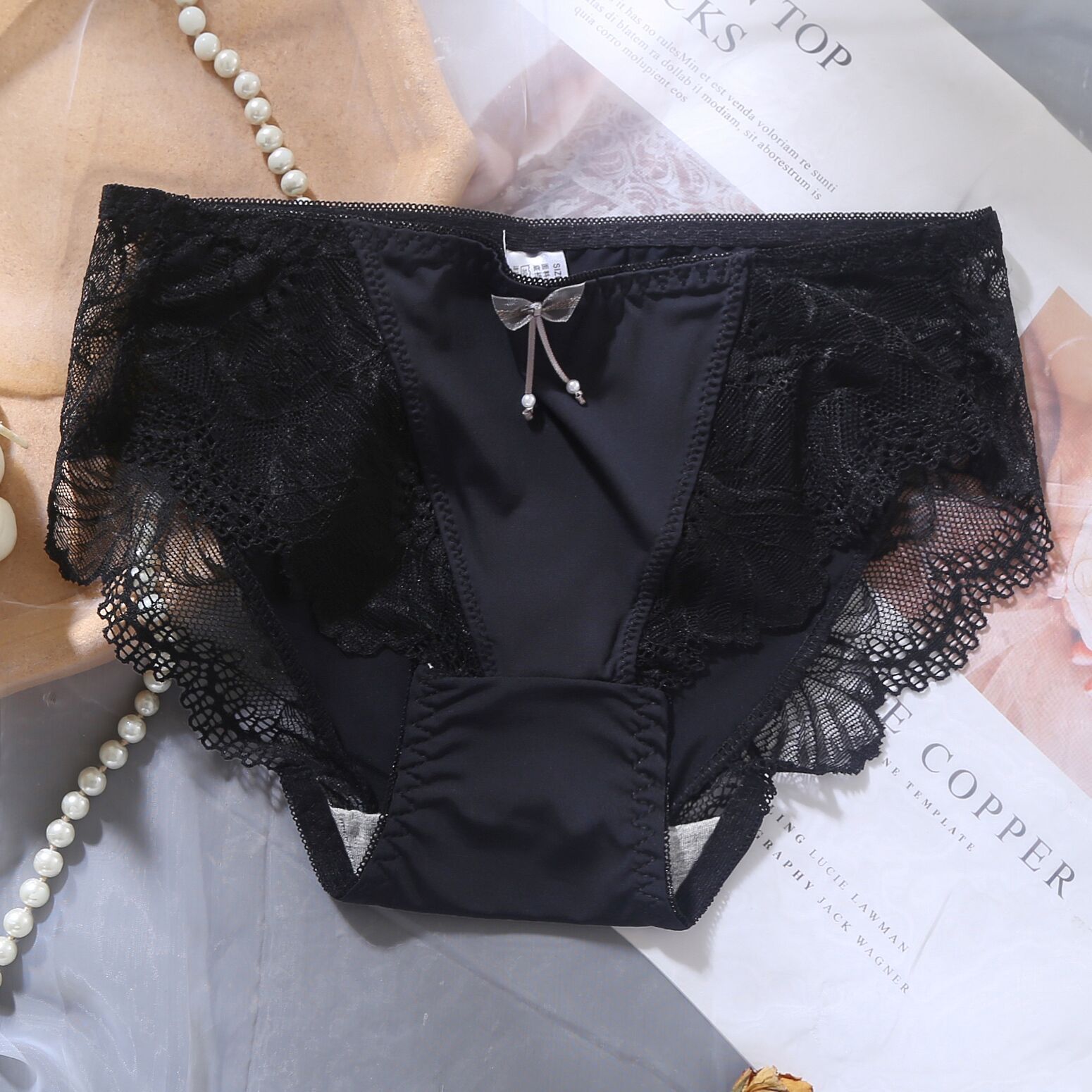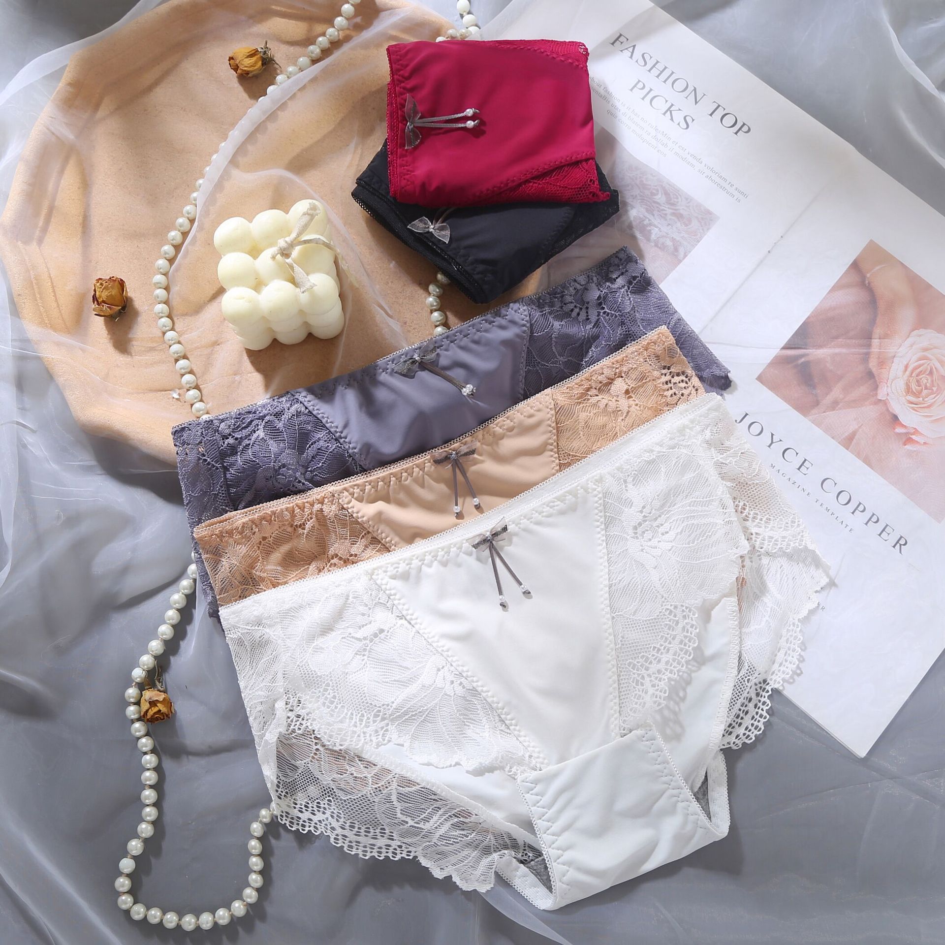 순수한 프랑스 레이스 속옷 여성의 섹시한 낮은 허리 소녀의 얇은 통기성 새로운 2023 폭발 아이스 실크 브리프스토어 가기
