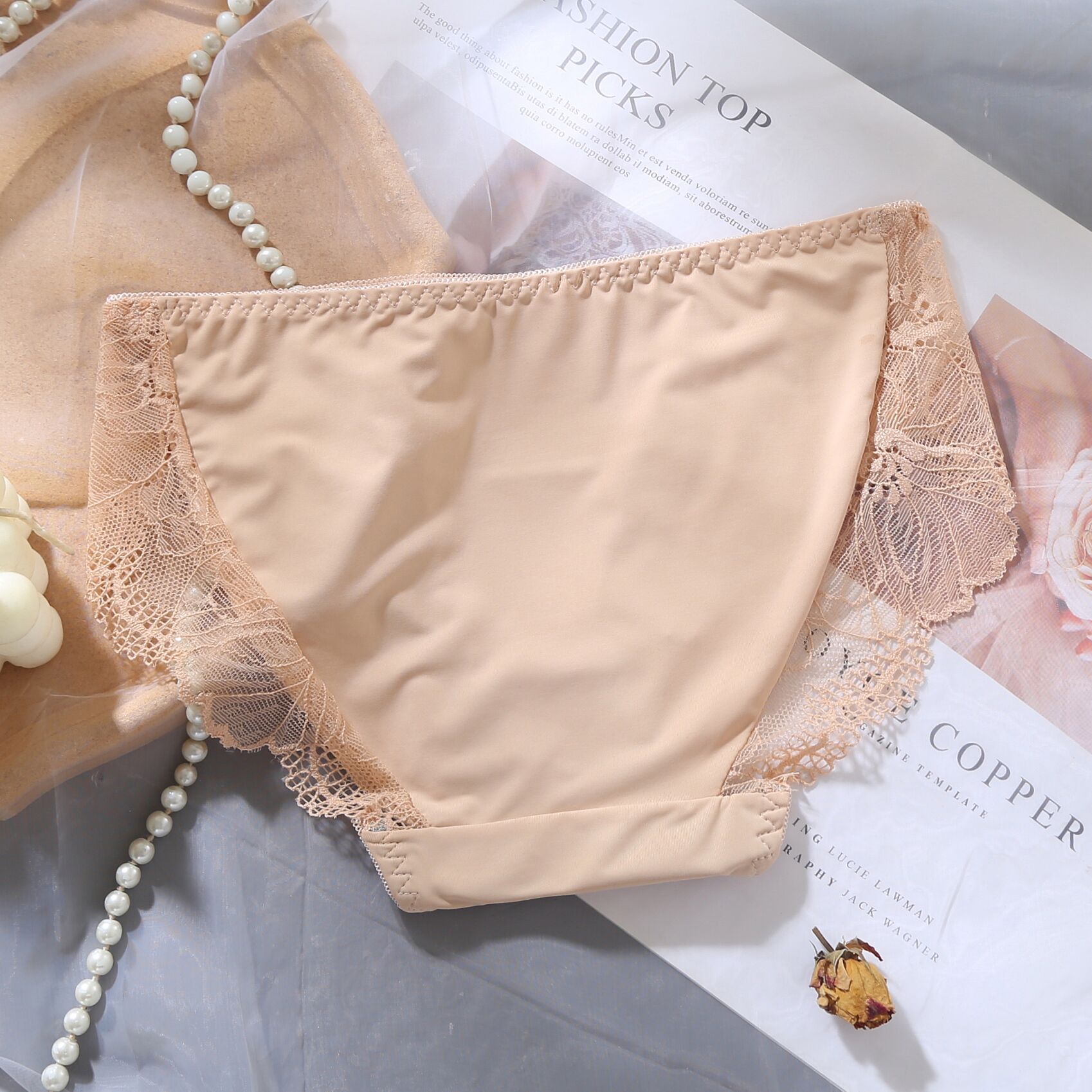 순수한 프랑스 레이스 속옷 여성의 섹시한 낮은 허리 소녀의 얇은 통기성 새로운 2023 폭발 아이스 실크 브리프