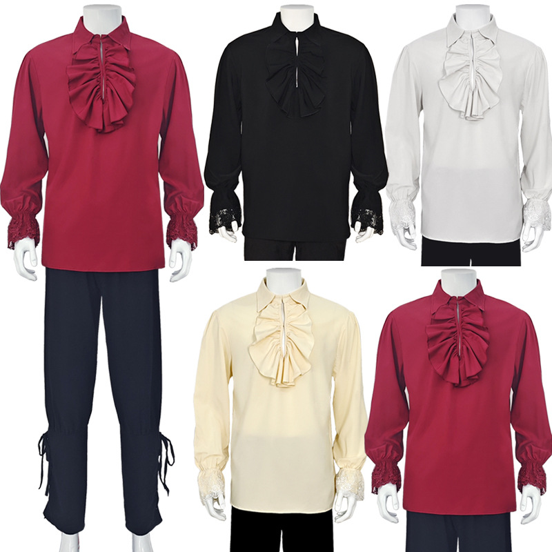 새로운 뱀파이어 남자의 르네상스 의상 주름 칼라 셔츠 중세 Steampunk 탑