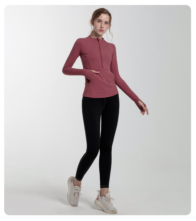 2023 가을과 겨울 요가 코트 여성용 속건 달리기 피트니스 세트 하프 지퍼 슬림핏 슬림핏 스포츠 탑스토어 가기