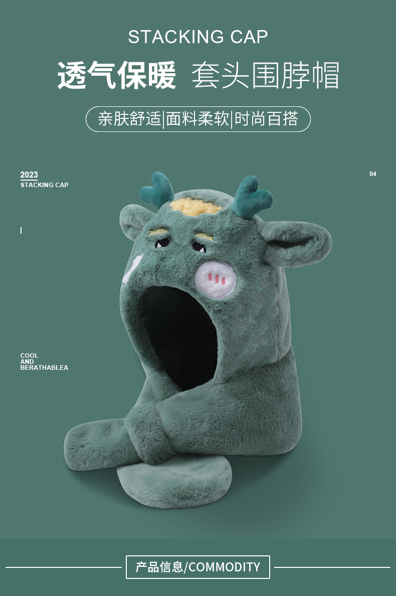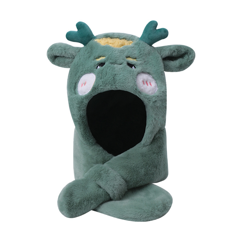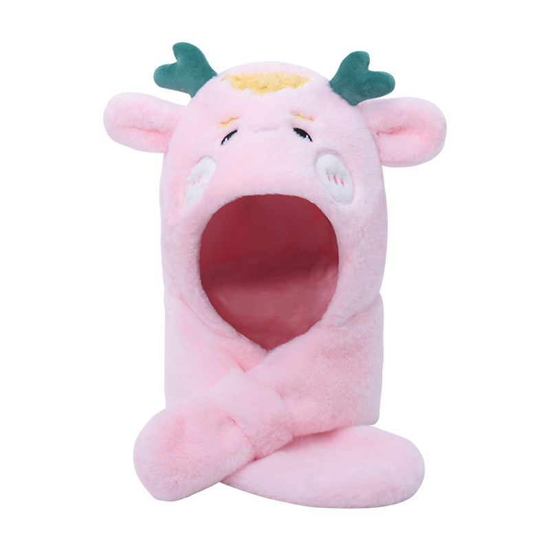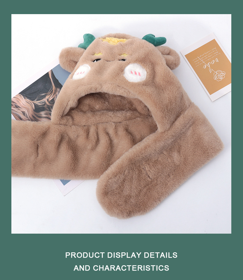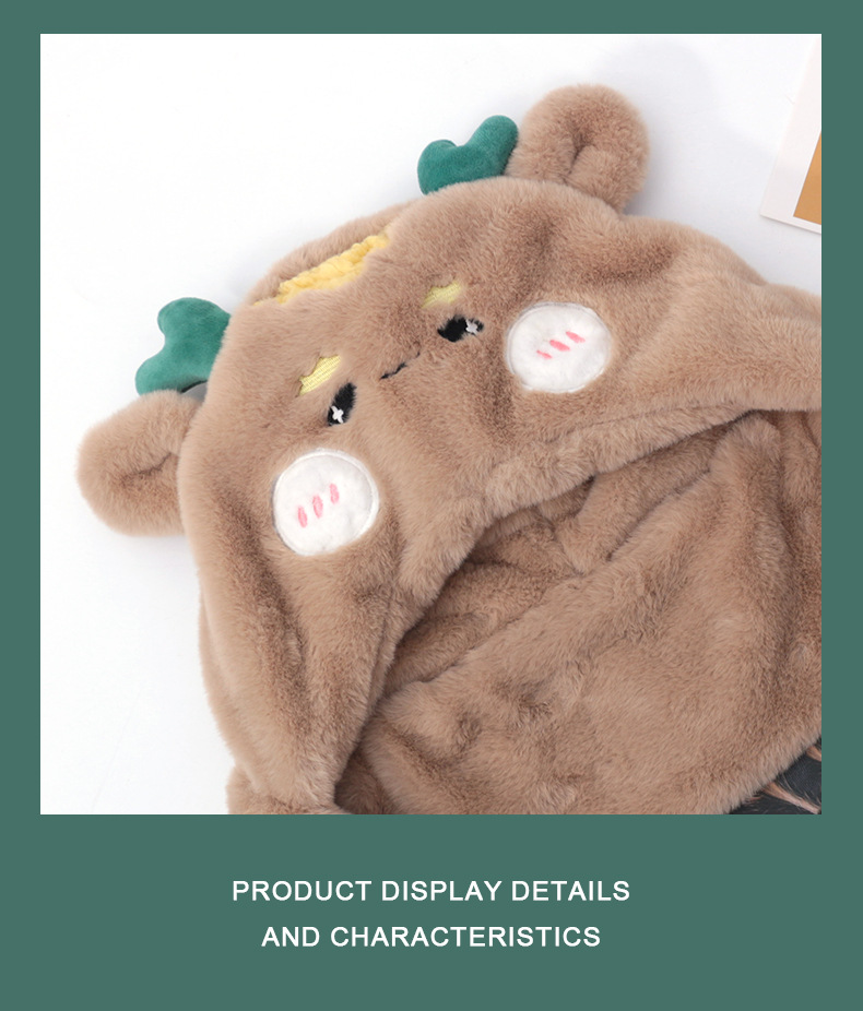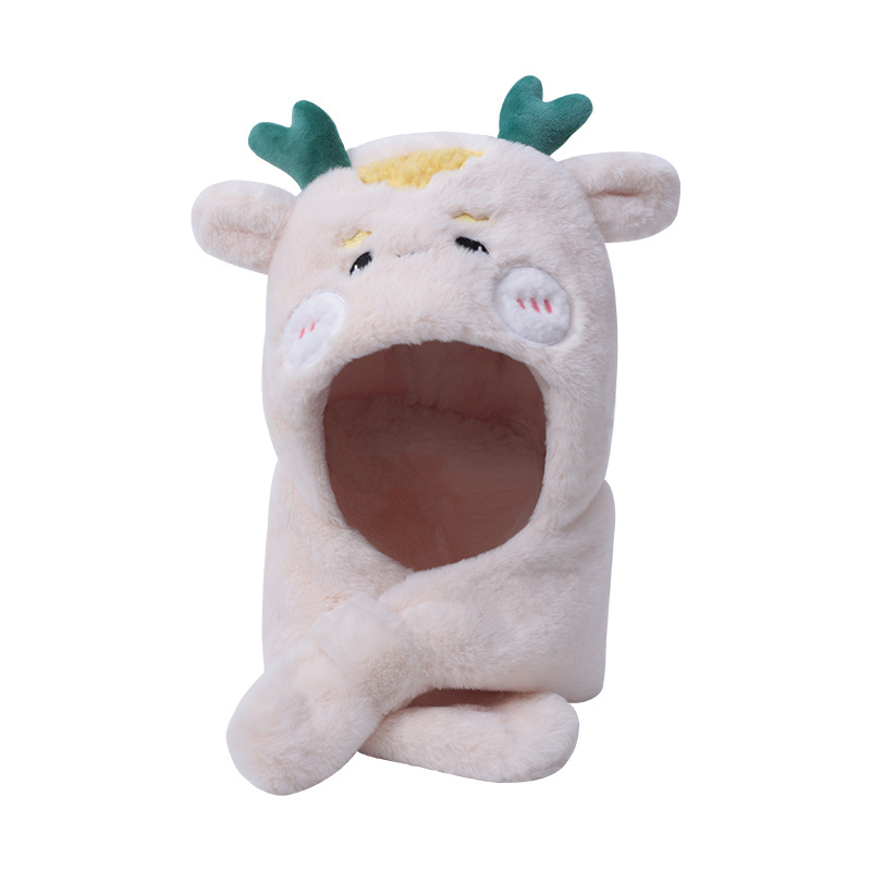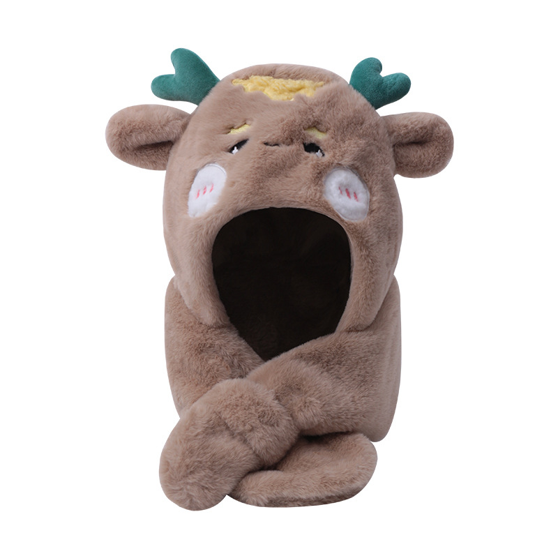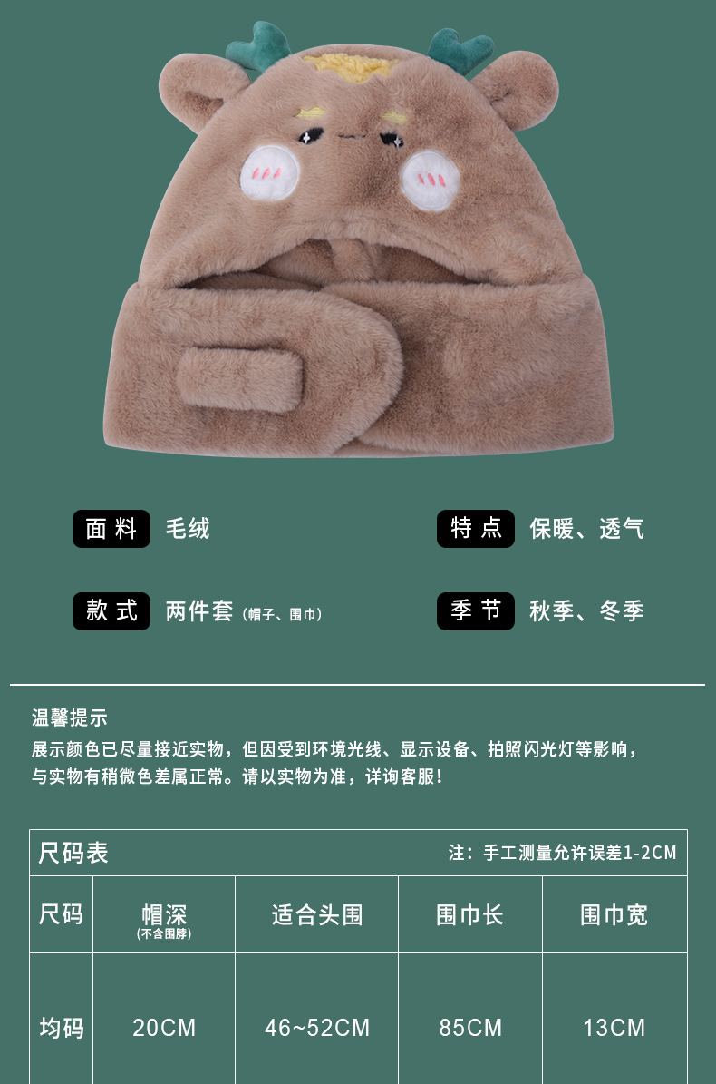 귀여운 따뜻한 녹용 플러시 모자 겨울 방한 모자 원피스 투피스 만화 캐릭터 성격 어린이 올매치
