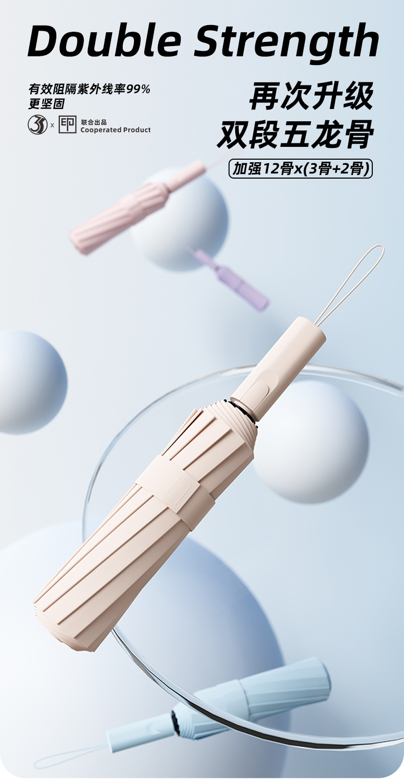 • 60 뼈 자동 강화 써니 우산 (선물 상자)-사쿠라 파우더