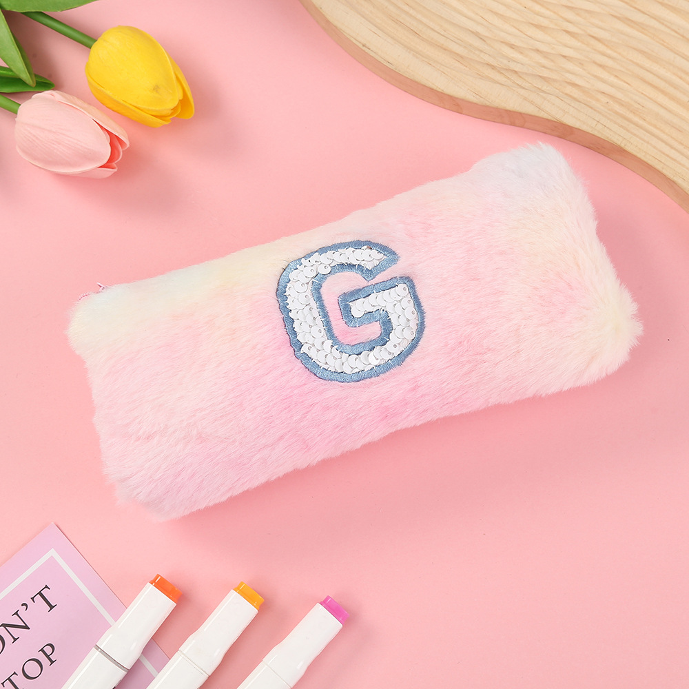 크로스 보더 새로운 필통 크리 에이 티브 매직 플러시 편지 문구 가방 귀여운 그라디언트 컬러 학생 팔각형 필통