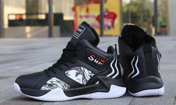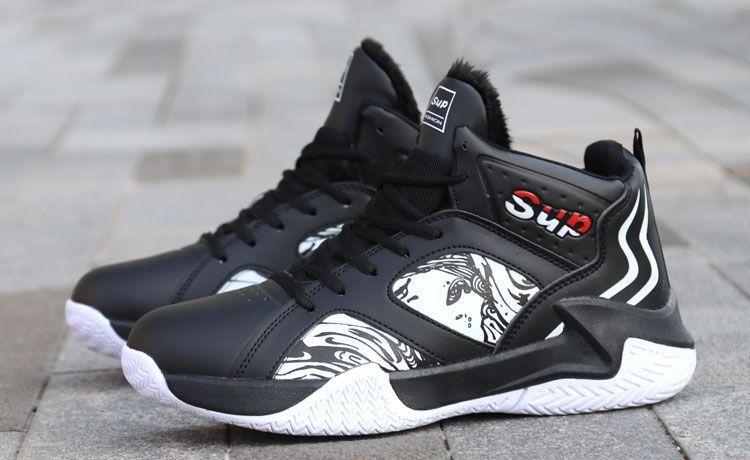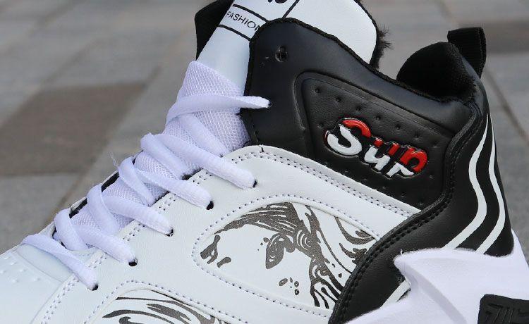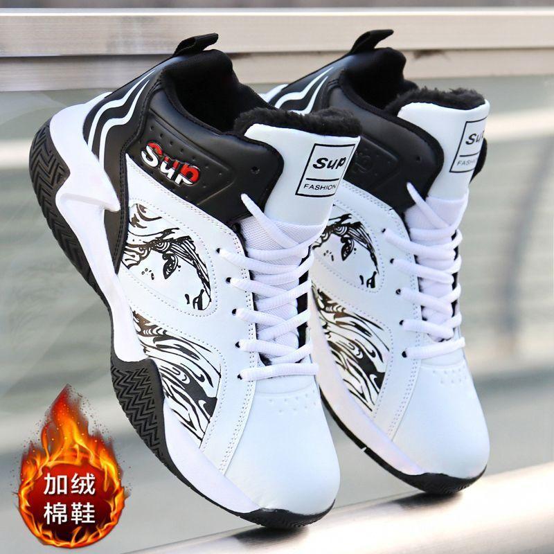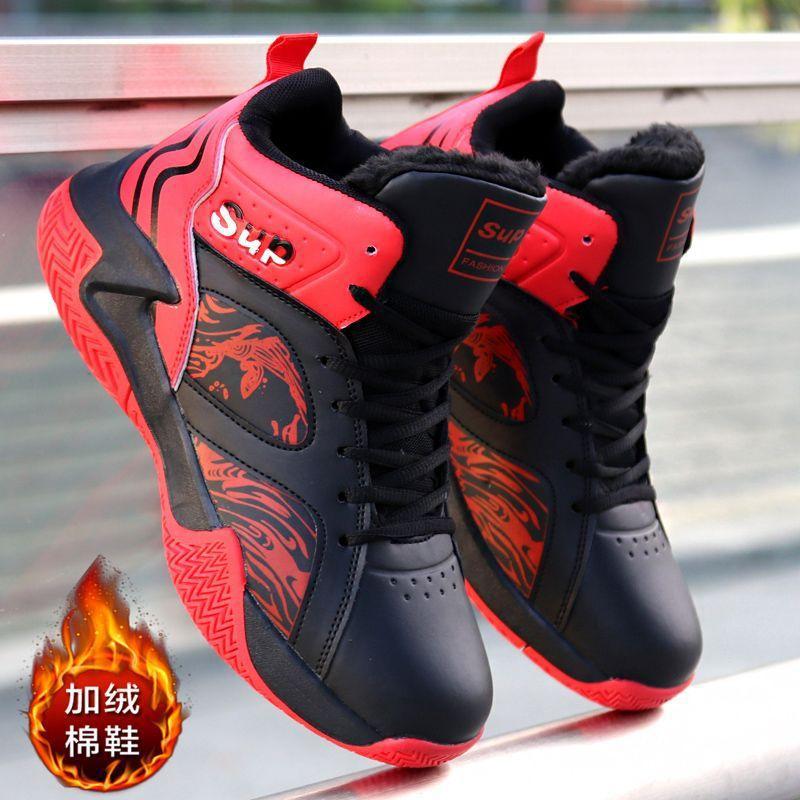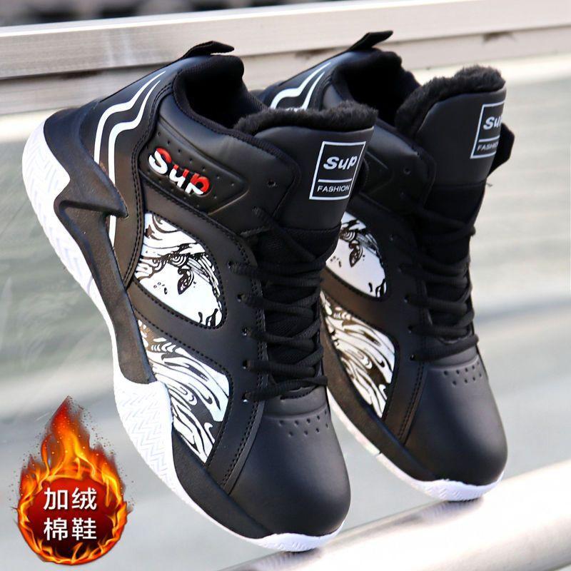 가을과 겨울 하이탑 신발 남성 신발 내마모성 실제 전투 운동화 농구 신발 가죽 스포츠 캐주얼 신발 기모 면화 신발스토어 가기