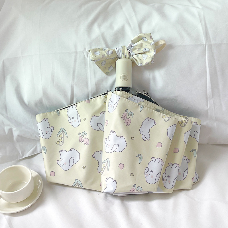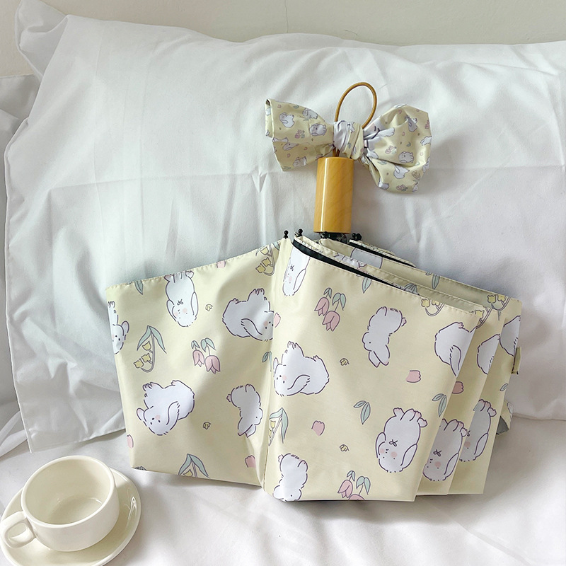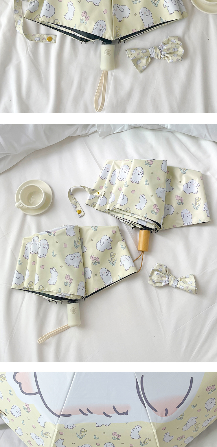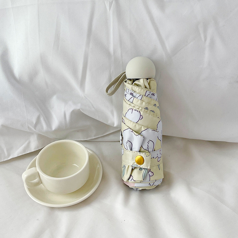 신선하고 귀여운 접는 우산 자외선 차단제 및 자외선 차단 및 비 보호 이중 사용 양산 우산 휴대용 여성용 검은 고무 태양 우산
